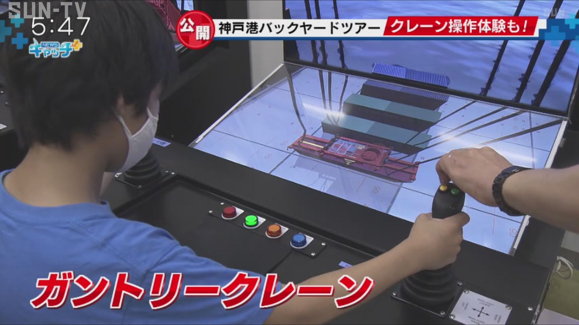 子どもたちは船に荷物を積み込む「ガントリークレーン」のシュミレーターを使ったコンテナの積み下ろしを体験。