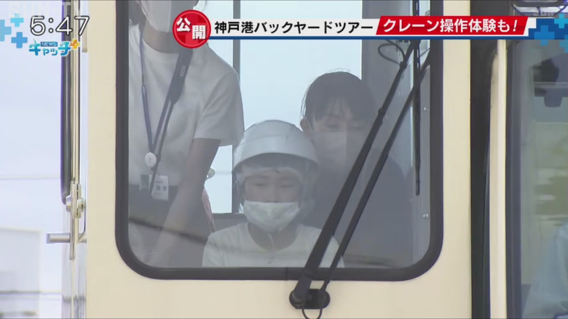 神戸港で開かれた「バックヤードツアー」には、抽選で選ばれた親子連れら16組が参加しました。