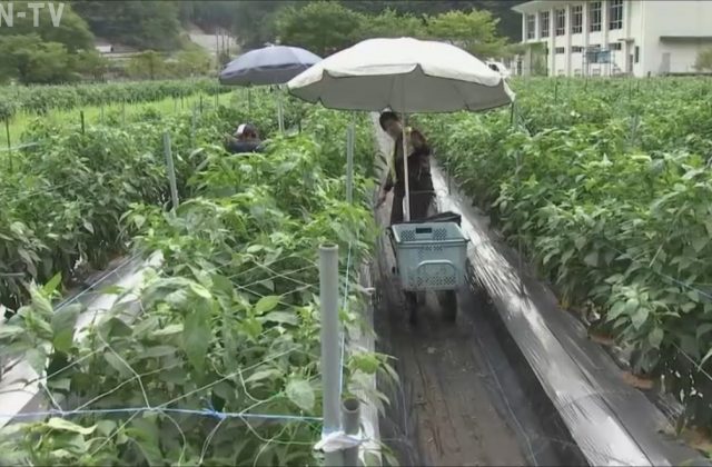 豊岡市但東町で特産の「たじまピーマン」が収穫の最盛期を迎えています。