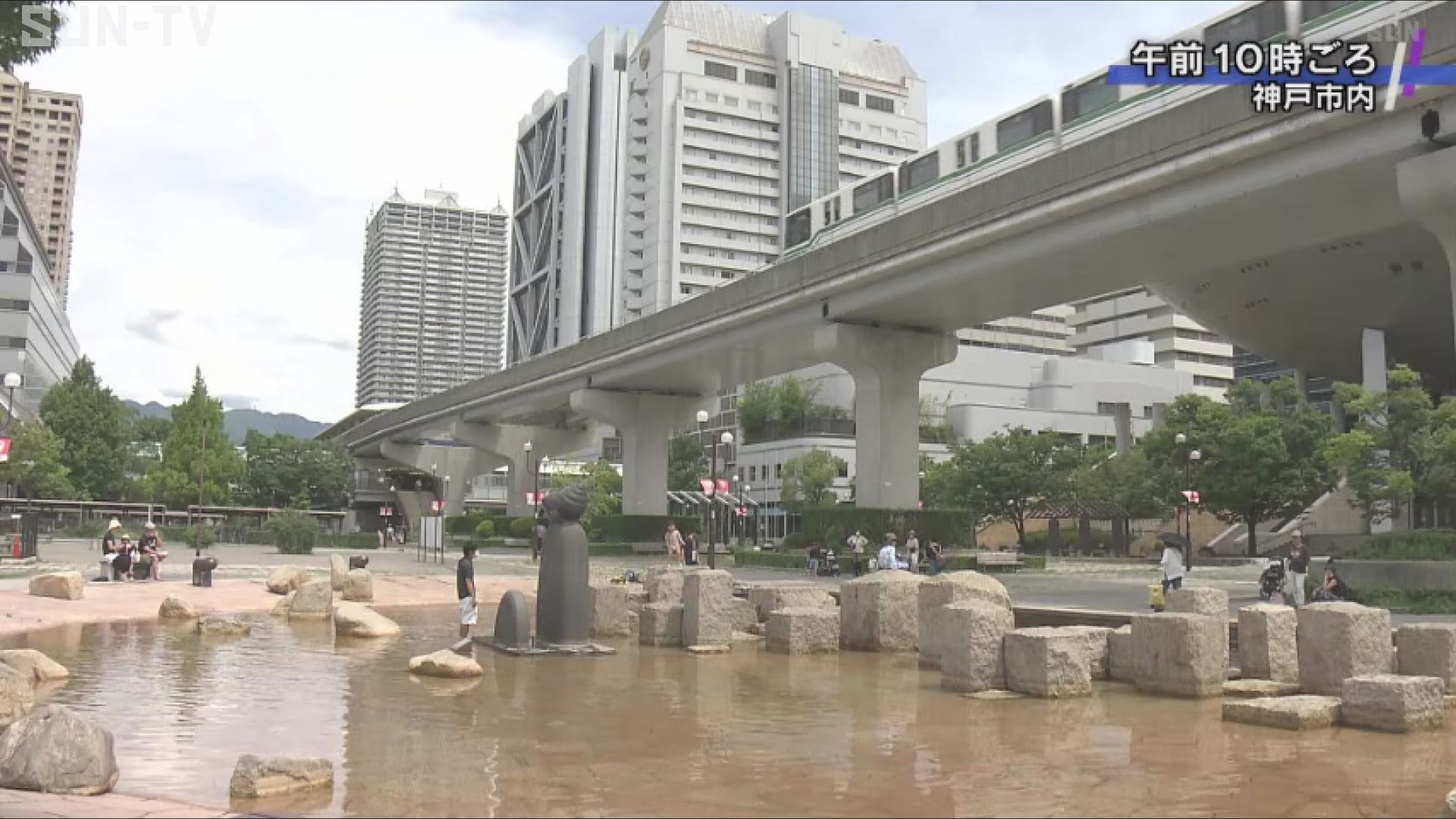厳しい暑さに見舞われた休日、水遊びができる神戸の公園は親子連れでにぎわいました。