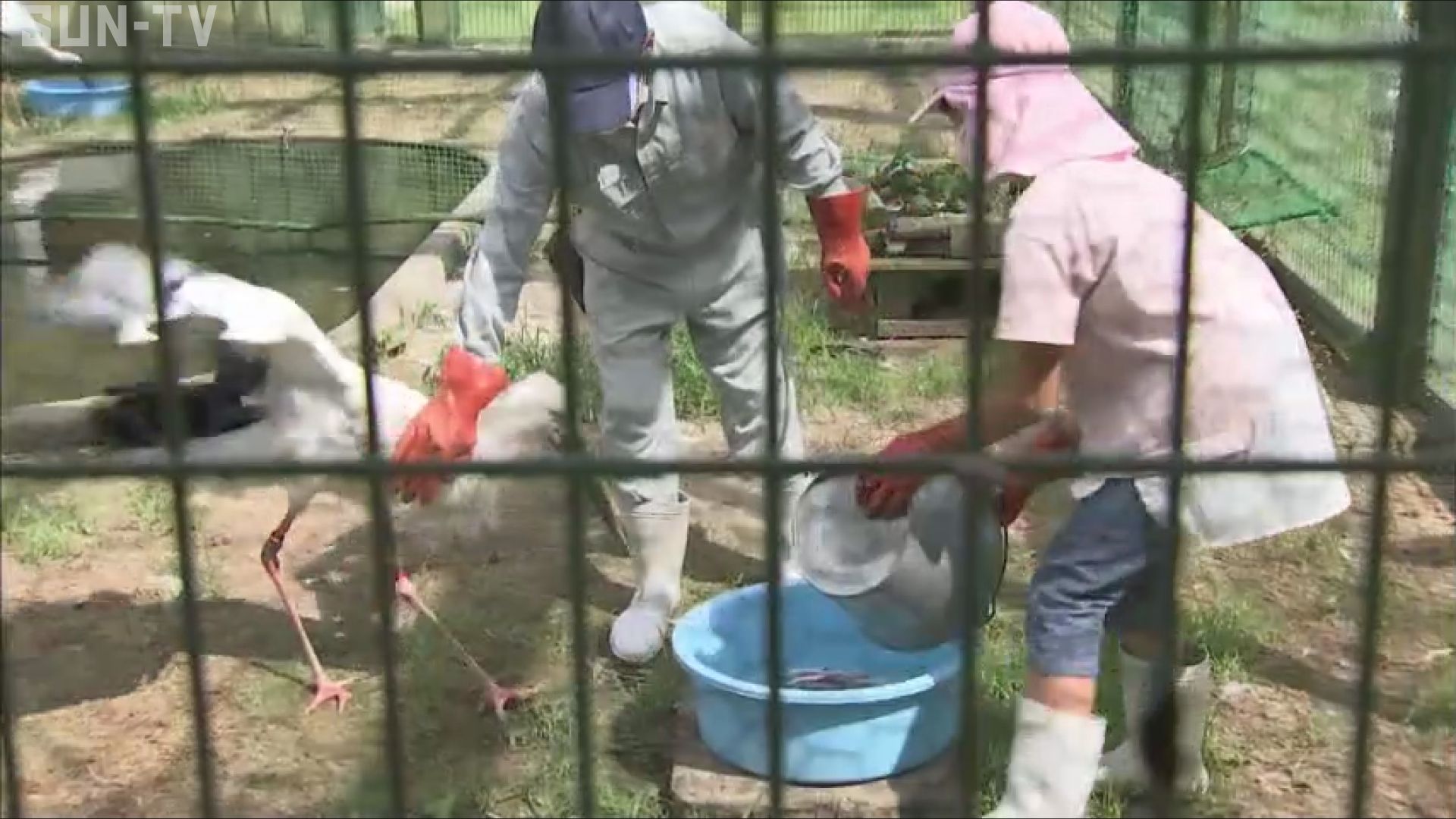 エサづくりを終えた子どもたちは実際にケージの中に入りコウノトリを刺激しないように静かに餌やりを体験しました。 コウノトリの郷公園では秋にも餌やり体験会を企画していて、今後も野生復帰事業への関心を深めてもらいたいとしています。
