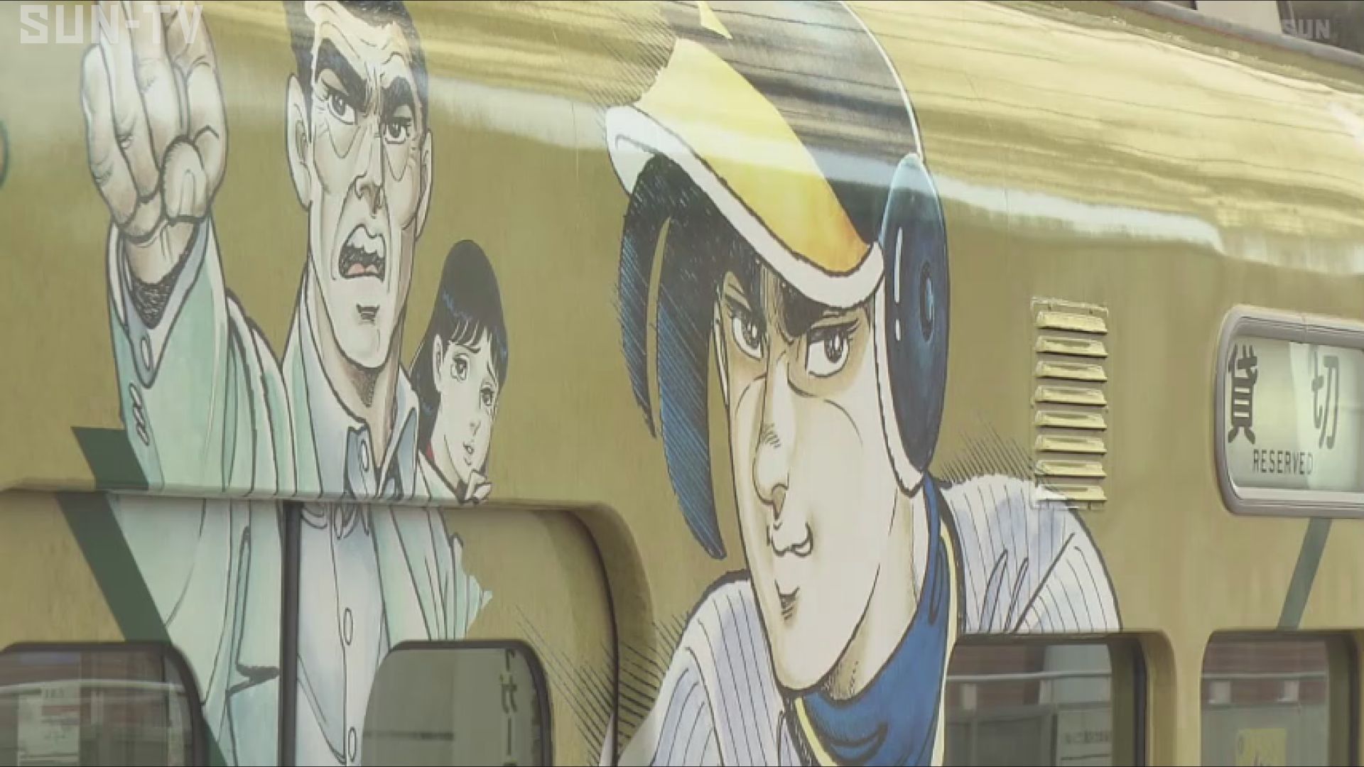 車両には、「ドカベン」や「巨人の星」など甲子園ゆかりの野球漫画、全9作品のキャラクターがあしらわれています。