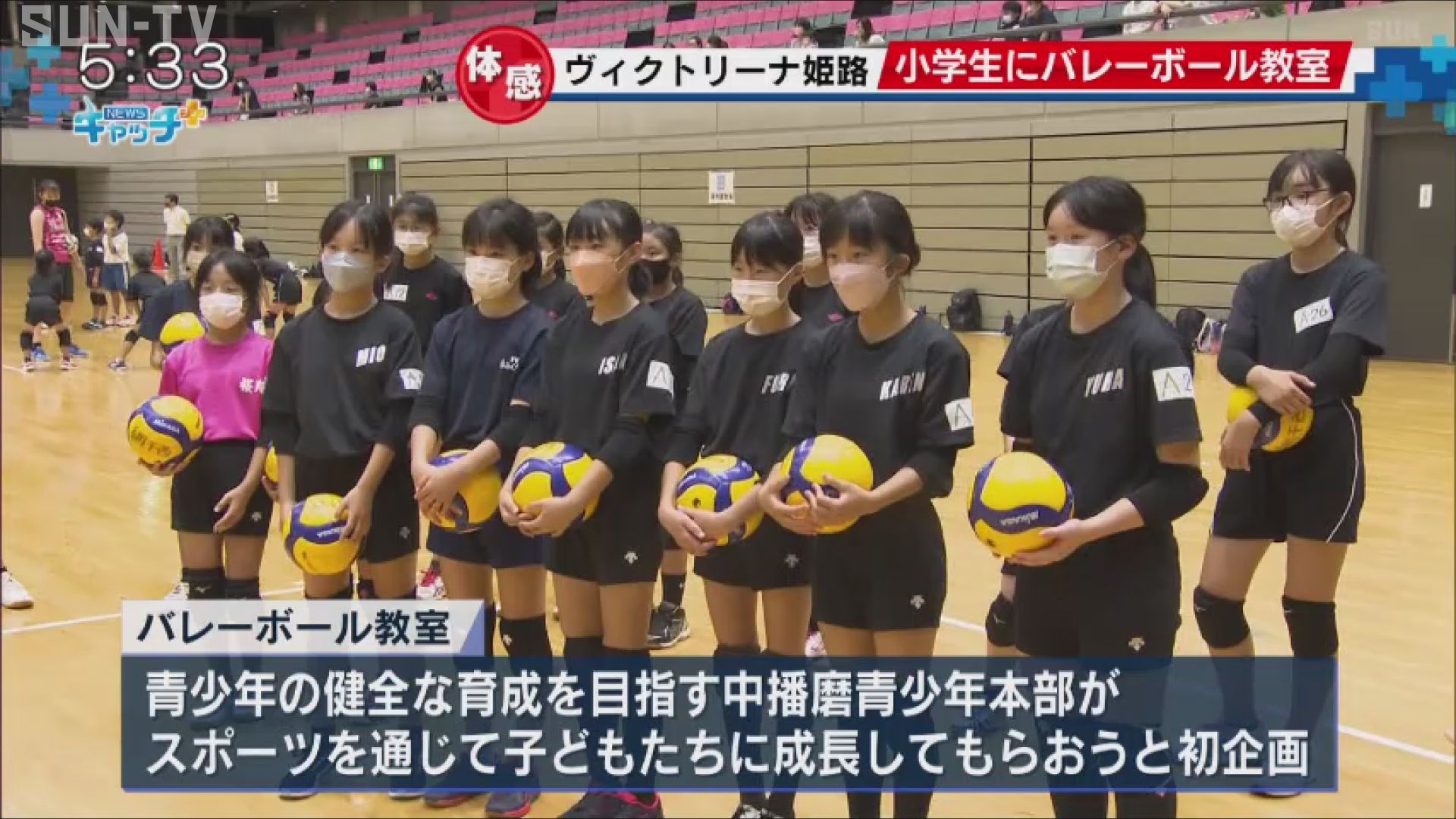 バレーボールVリーグ1部女子で活躍するヴィクトリーナ姫路の選手が4日、小学生を対象にバレーボール教室を開きました。