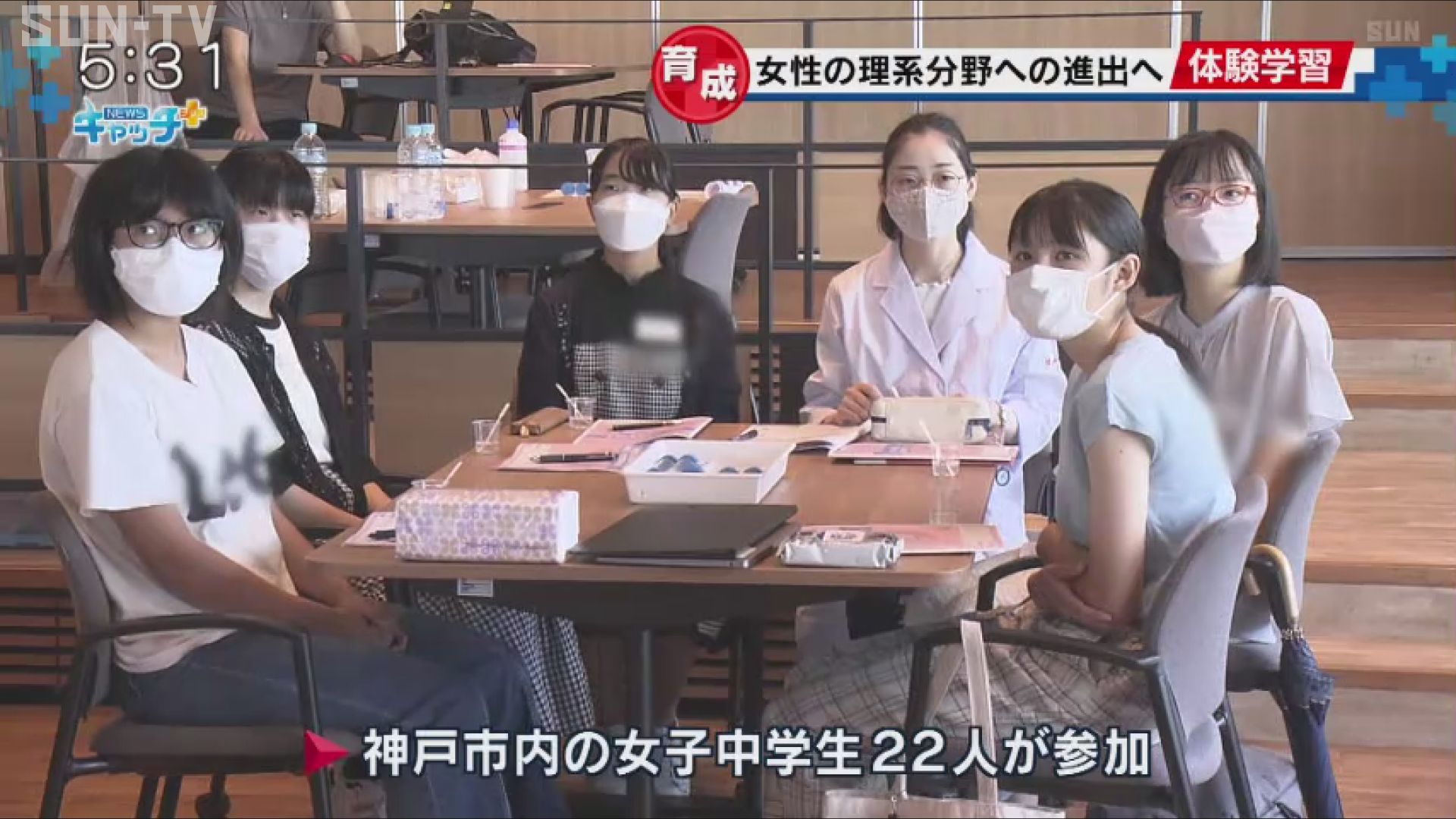 この体験学習は、日本で研究者に占める女性の割合が17.5%と諸外国と比べて低いことから、もっと理系分野に関心を持ってもらいたいと、神戸市が企画しました。