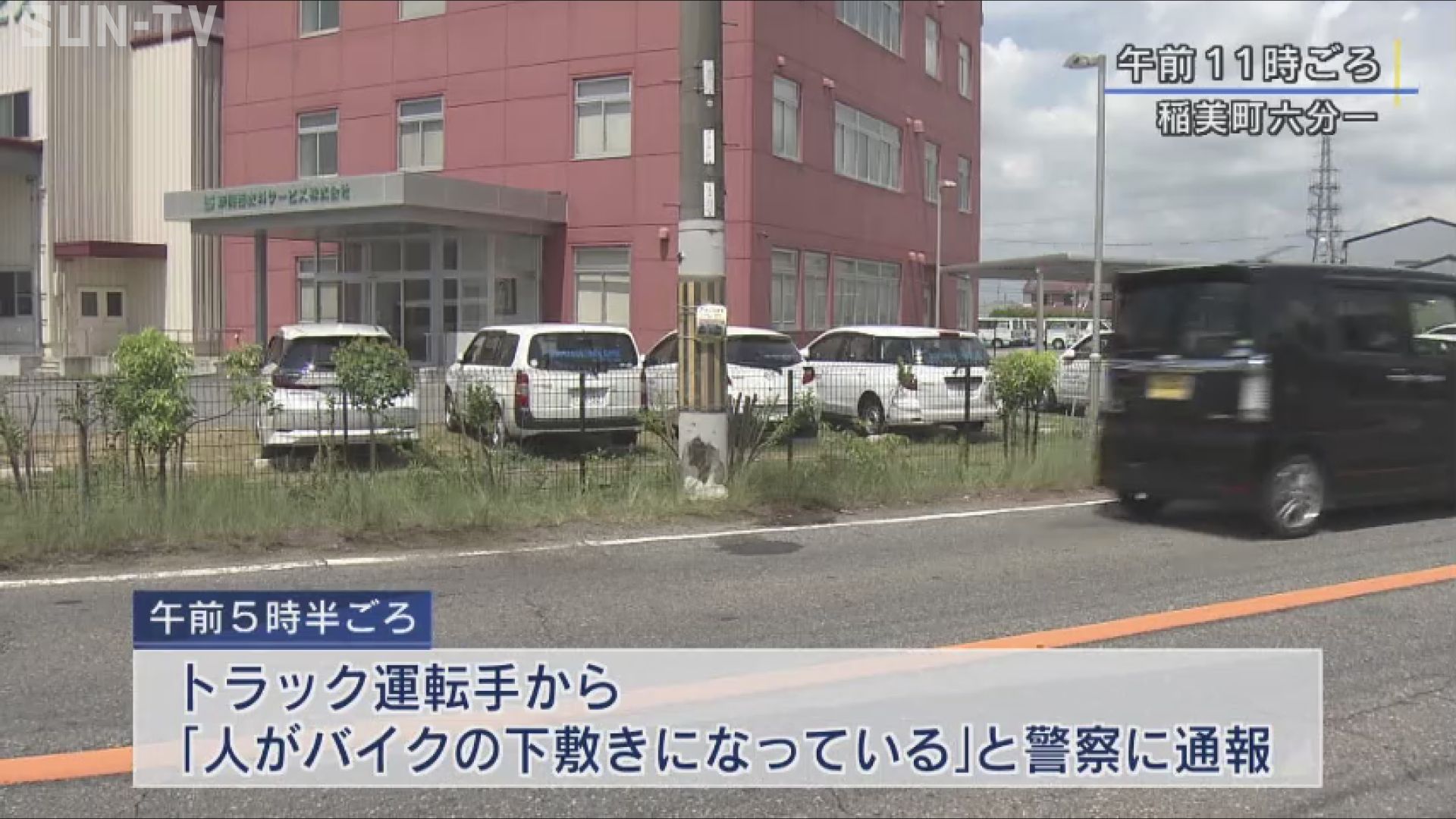 7日午前5時半過ぎ、兵庫県稲美町の県道で近くを通りかかったトラックの運転手から「人がバイクの下敷きになっている」と警察に通報がありました。