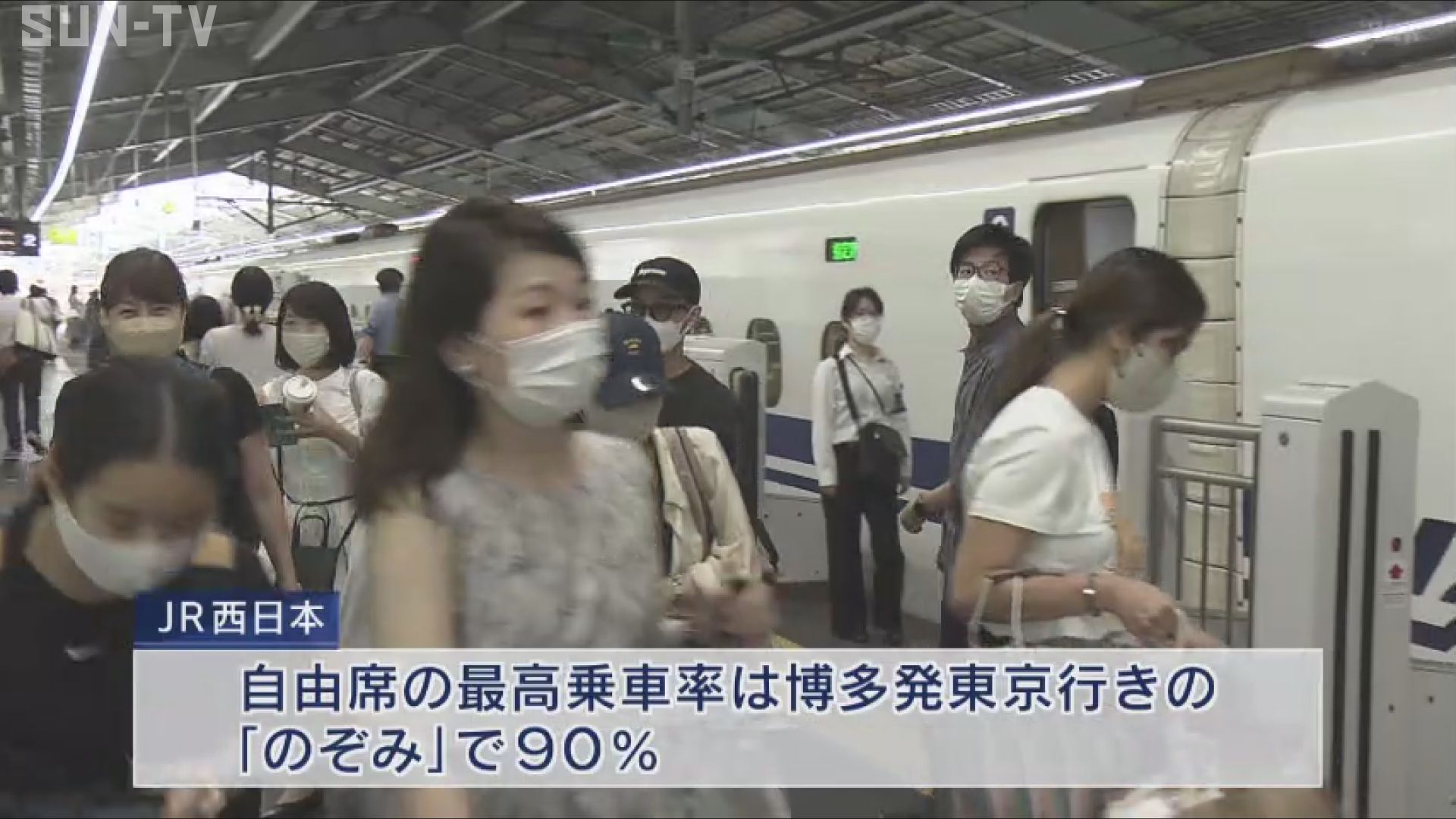 自由席の最高乗車率は、博多発東京行きの「のぞみ」で90パーセントとなっています。