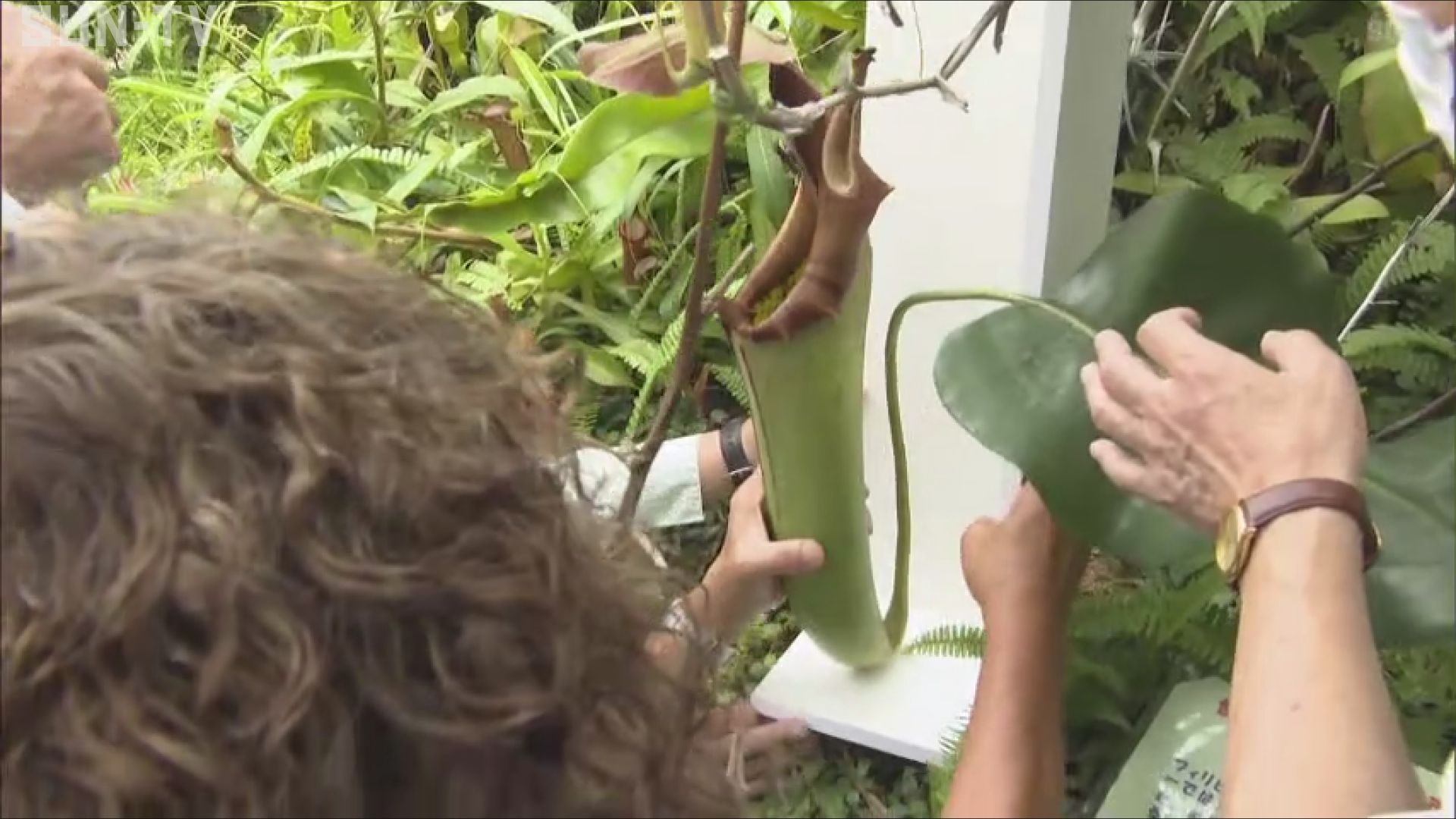 訪れた人たちが固唾をのんで見守るのは「世界最長のウツボカズラの捕虫袋」の認定に向けた測定の様子です。
