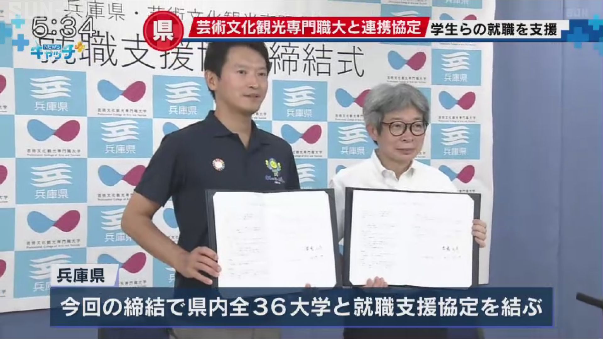 芸術文化観光専門職大学は開学2年目で芸術文化と観光の視点から地域に貢献する人材を育成していて、今回の締結で兵庫県は県内の全36大学と就職支援協定を結ぶことになります。