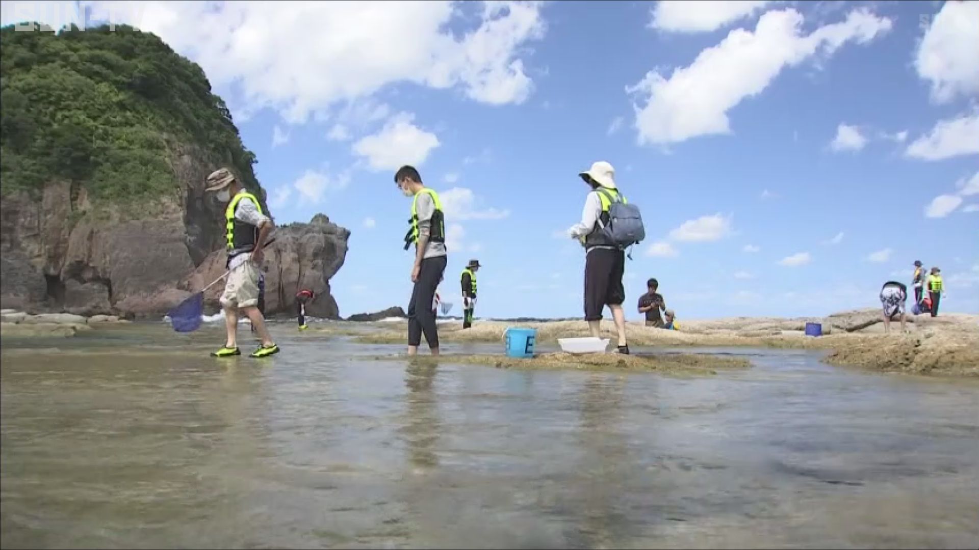 山陰海岸ジオパークの海辺で暮らす生き物を調査する「磯の生物の観察会」が兵庫県香美町の今子浦海岸で行われました。