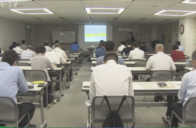 説明会では、男性の育休取得が全国で13.97%にとどまっている現状や、原因のひとつとなっている職場でのハラスメント対策が紹介されたほか、神戸の建設会社が男性育休取得率100%を達成し、働き方改革で業績を向上させた事例などが報告されました。