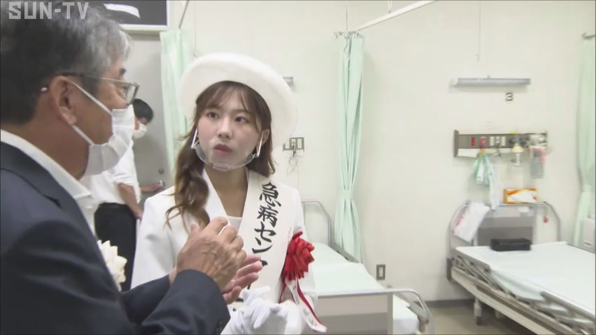 地域の救急医療に関心をもってもらおうと「姫路お城の女王」が兵庫県姫路市の急病センターで一日院長を務めました。
