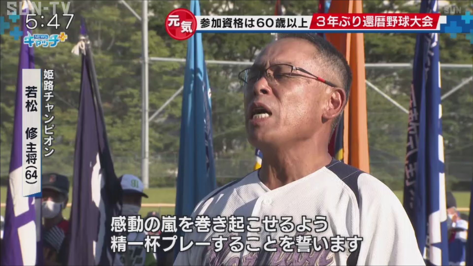 姫路チャンピオンの若松修主将は「けがや病気から立ち上がり年齢に負けない仲間がいます。感動の嵐を巻き起こせるように精一杯プレーすることを誓います」と選手宣誓しました。