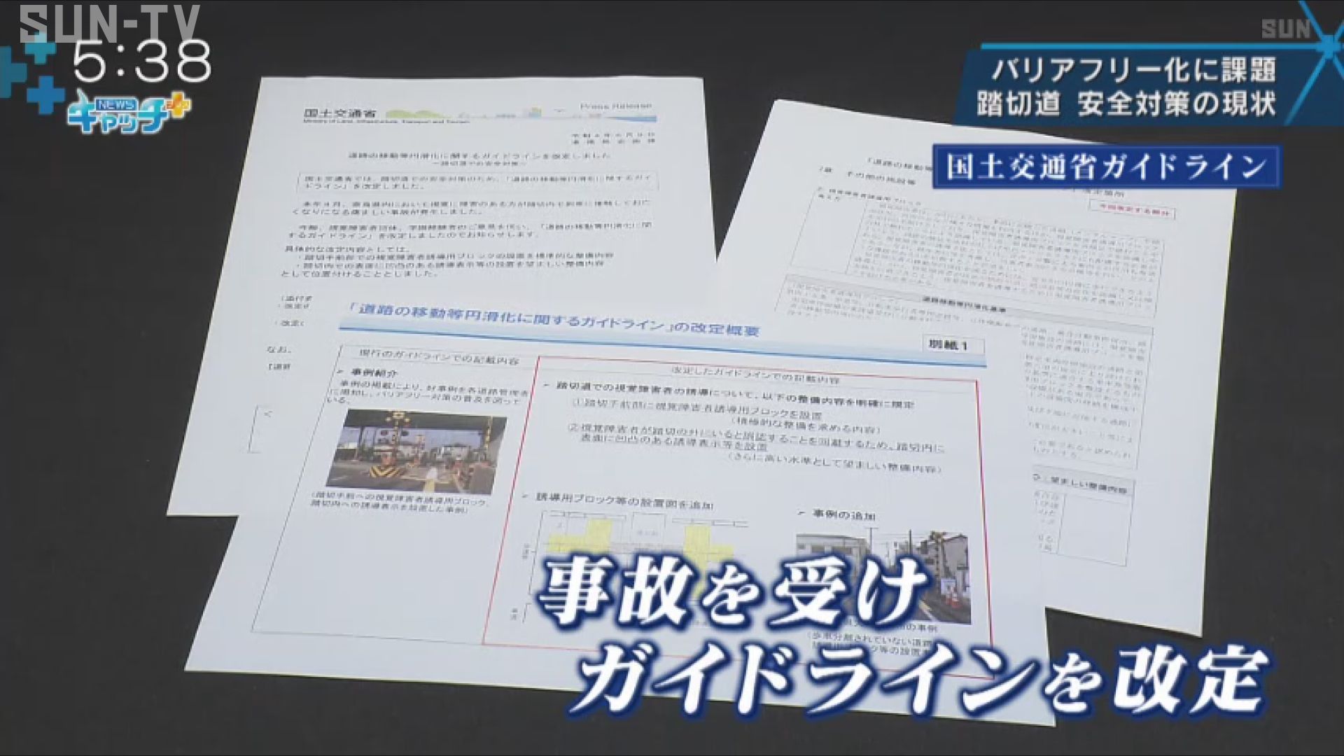 事故を受け国土交通省は、踏切道での安全対策に関するガイドラインを改定。 「踏切内に凹凸のある誘導表示を設置すること」を望ましい整備内容として位置づけました。