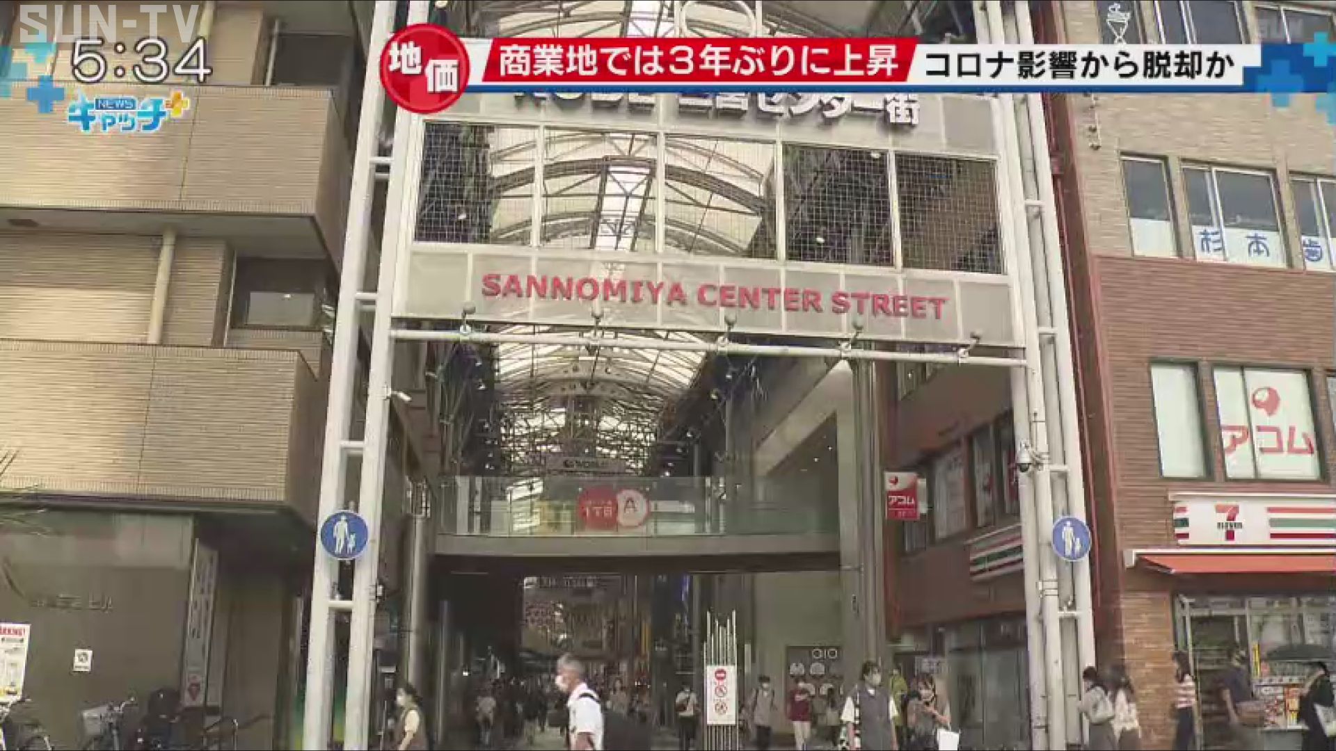 兵庫県全体の基準地価は前の年と比べ、住宅地がマイナス0・1パーセントと下落幅は縮小。商業地はプラス0・4パーセントと、3年ぶりに下落から上昇に転じました。新型コロナウイルスの影響から脱却しつつあることが理由とみられています。