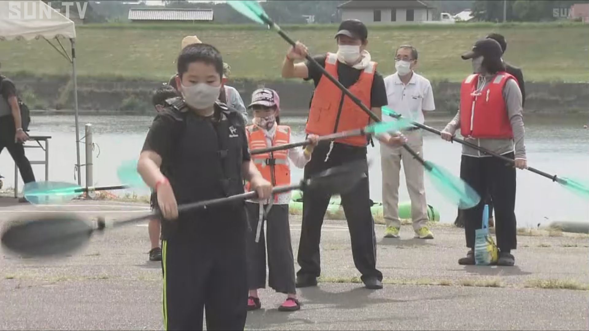 参加者たちはパックラフトと呼ばれるゴムボートに乗り込み、羽根田選手からこぎ方のコツなどを教わっていました。