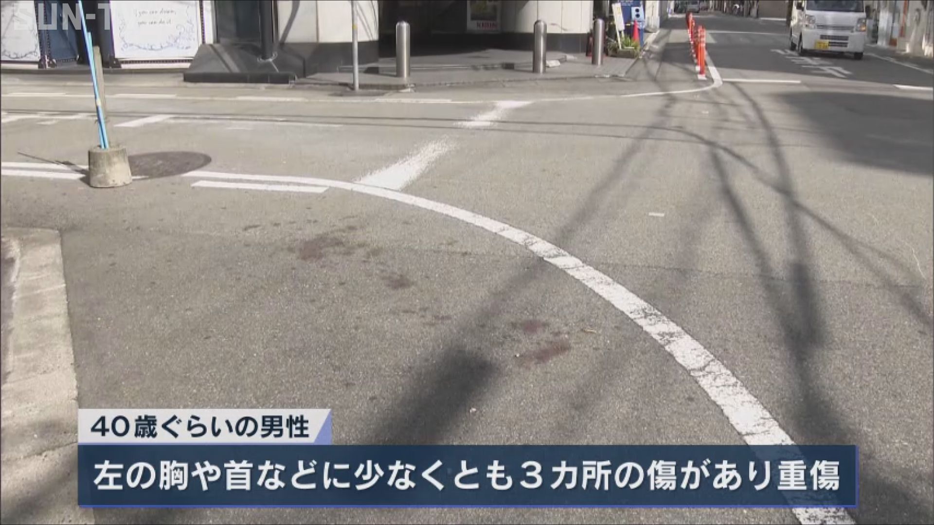 警察が駆け付けたところ、40歳ぐらいの男性が胸などから血を流して路上に座り込んでいて、男性は病院に搬送されました。