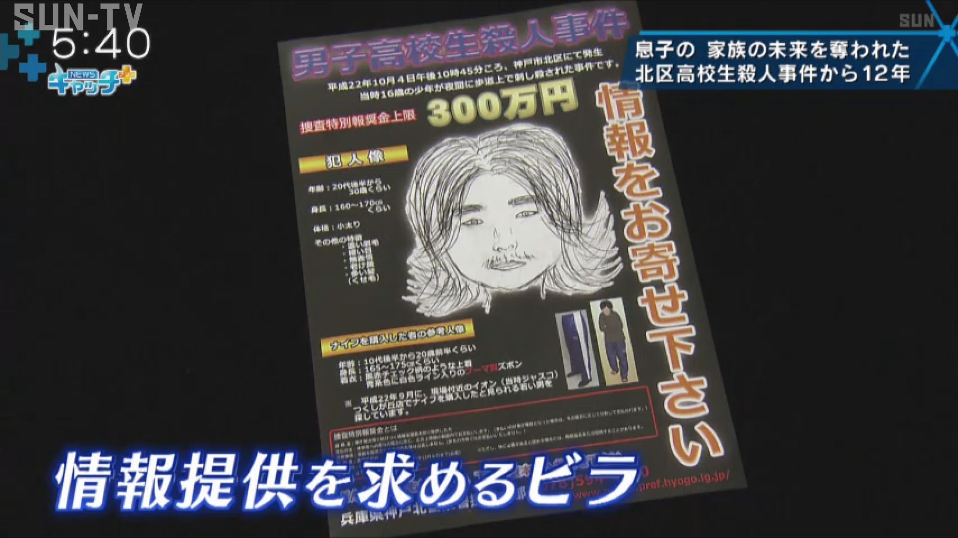 12年前の10月4日、午後10時45分ごろ。神戸市北区筑紫が丘の路上で友人と会っていた将太さん(当時16)が頭や首などを刺され命を奪われました。