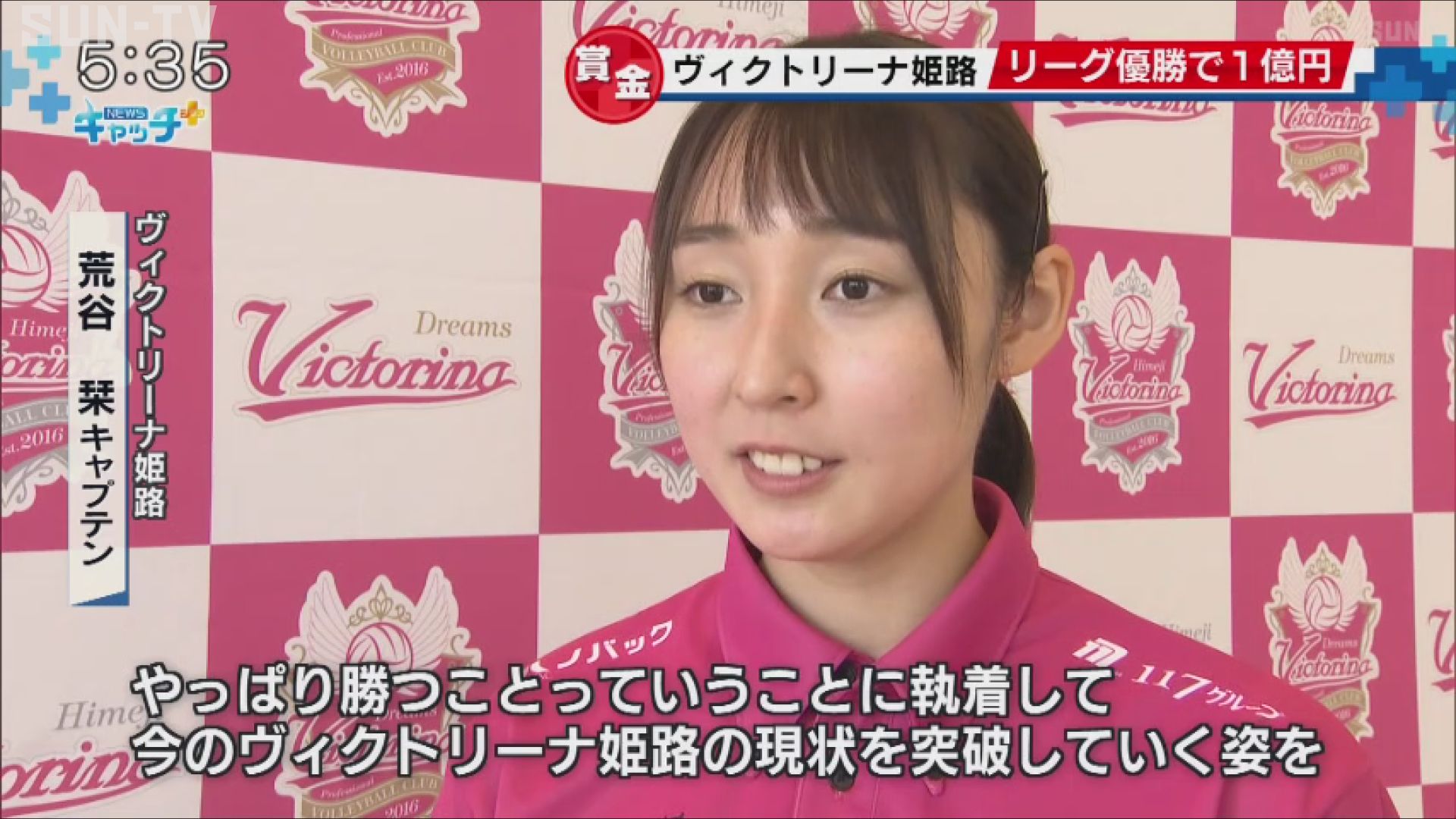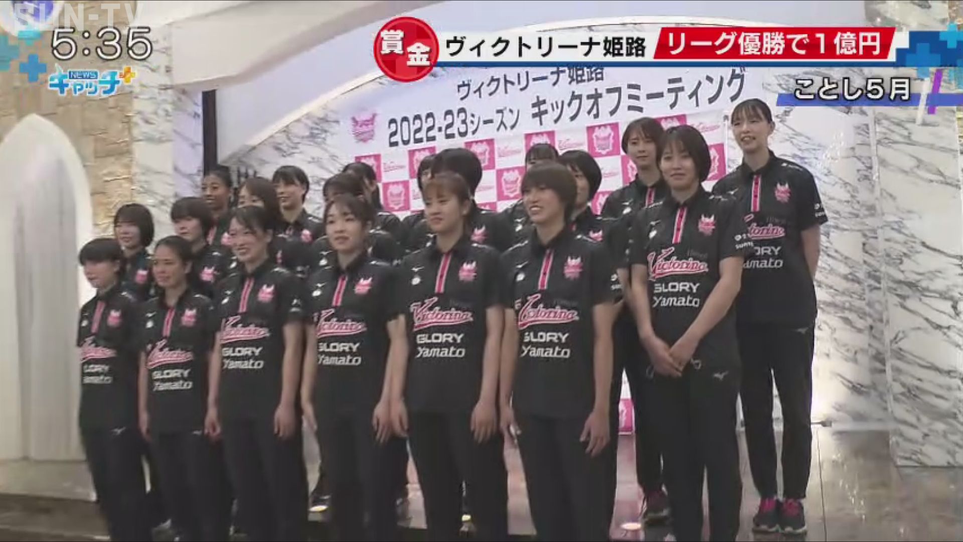 バレーボールVリーグ1部女子のヴィクトリーナ姫路は12日、今後5年間のうちにリーグ優勝した場合、スポンサー企業から賞金1億円が贈られることになったと発表しました。