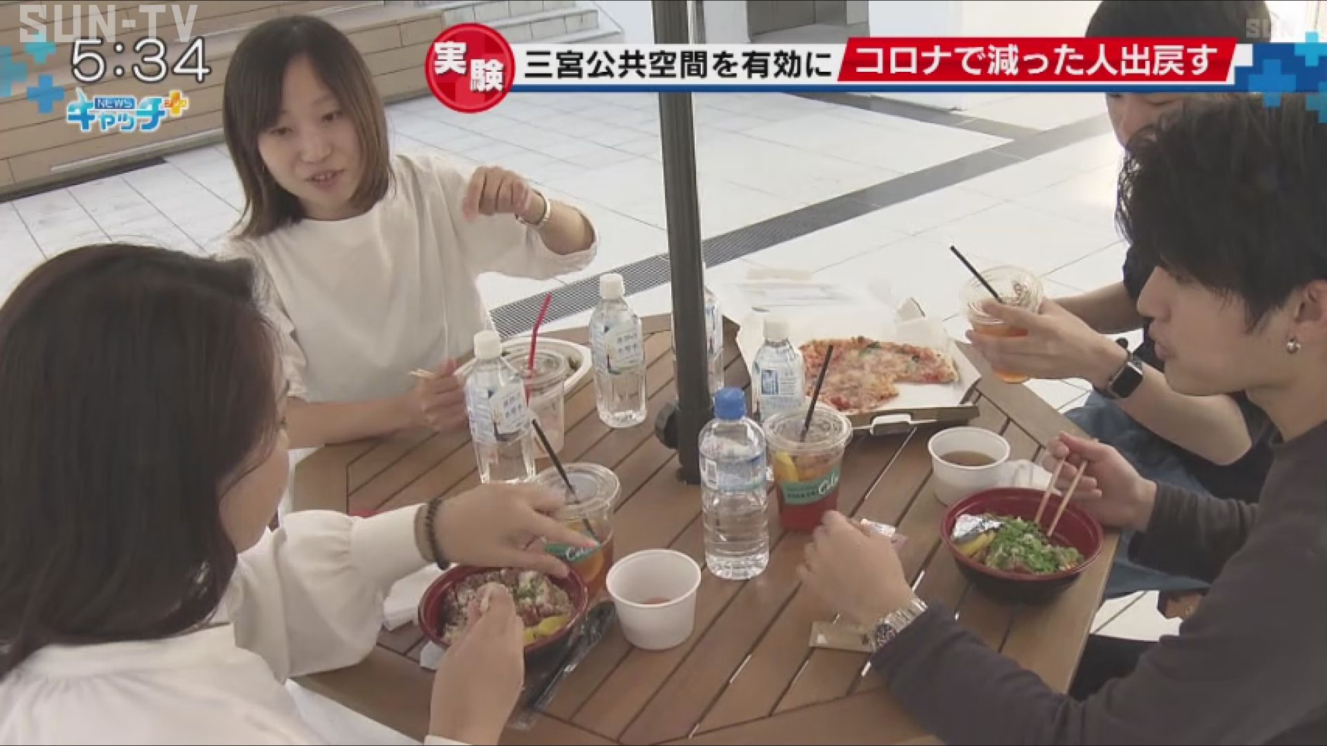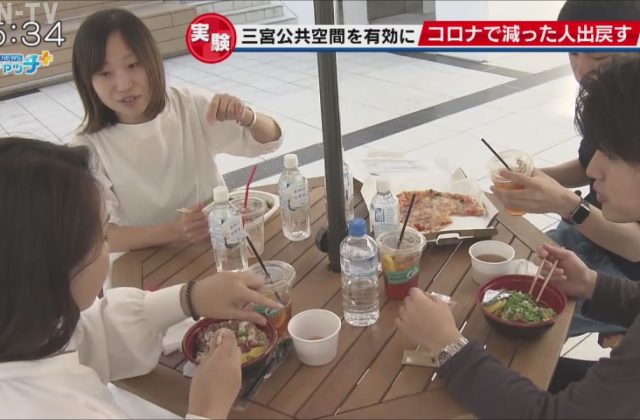 これは神戸大学と関西電力などが実施する実証実験で、公共空間を活用し飲食サービスを提供することで、新型コロナによる制限で人出が減った街を活性化しようと企画されたものです。