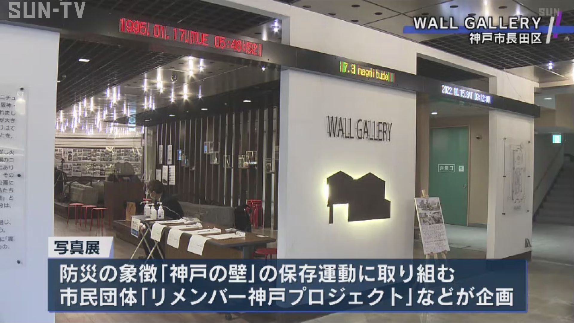 この写真展は、防災の象徴「神戸の壁」の保存運動に取り組んできた市民団体「リメンバー神戸プロジェクト」などが企画したものです。