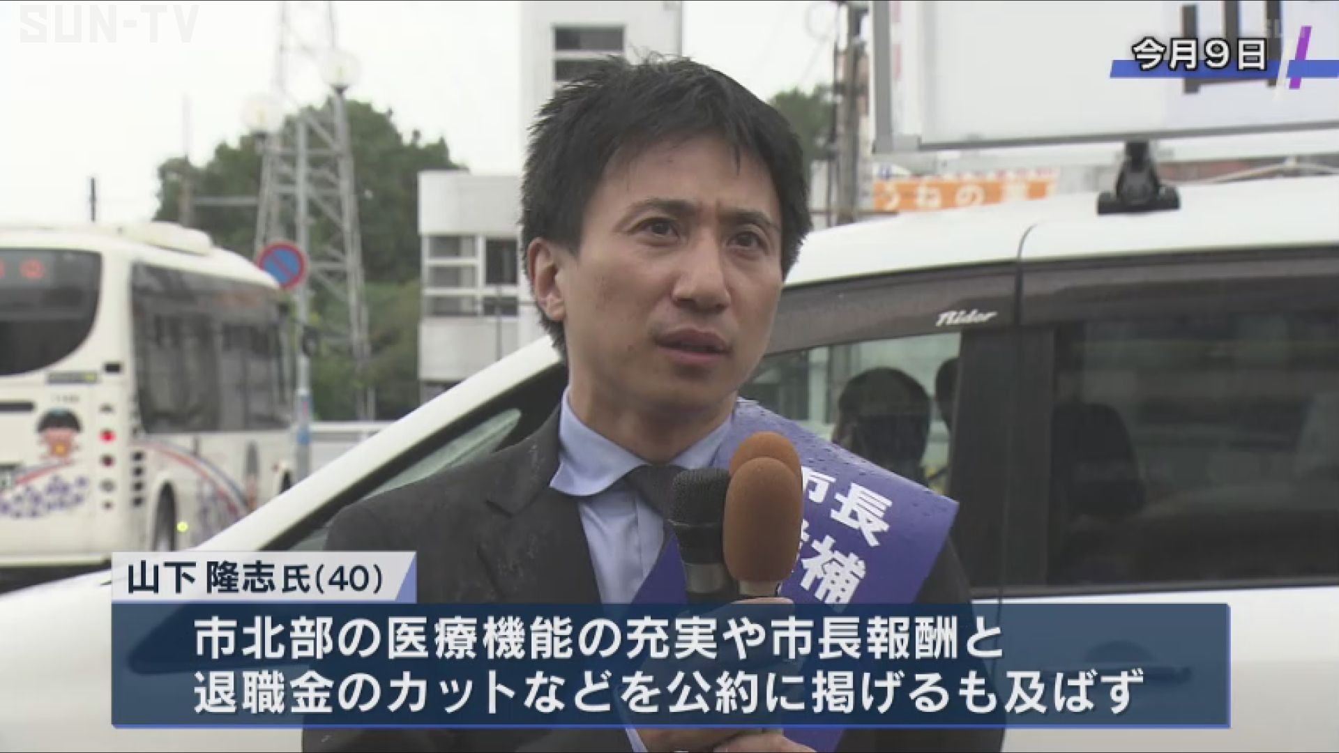 山下さんは、市北部の医療機能の充実や、市長報酬と退職金のカットなどを公約に掲げましたが及びませんでした。