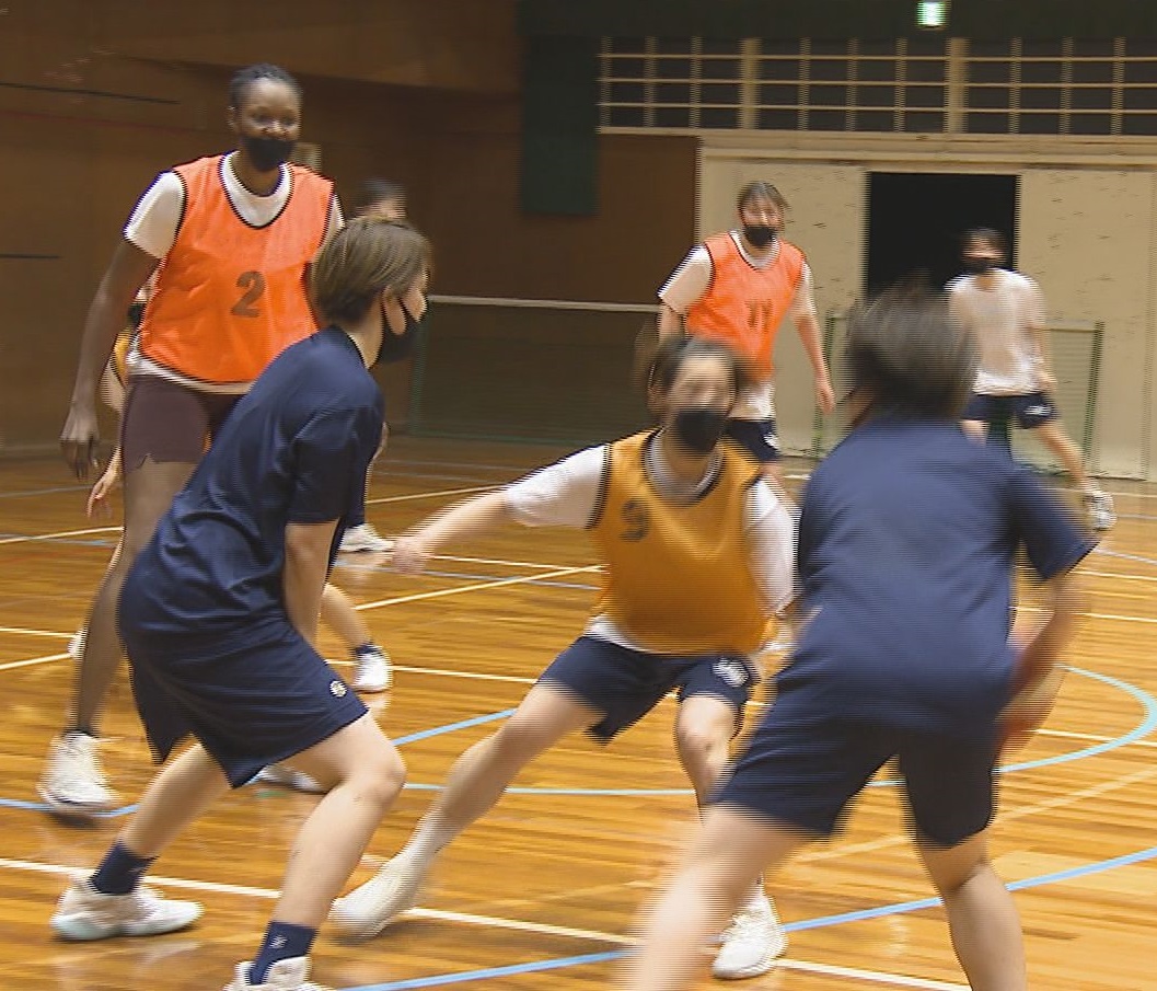 選手は15人で、得点源の白崎、オールラウンドプレイヤーの矢野凪紗(なぎさ)のほか、アフリカ・マリ出身のラリヤ(195㎝)も在籍。兵庫県市川町の旧鶴居中学校(22年3月閉校)の体育館で練習を行っている。
