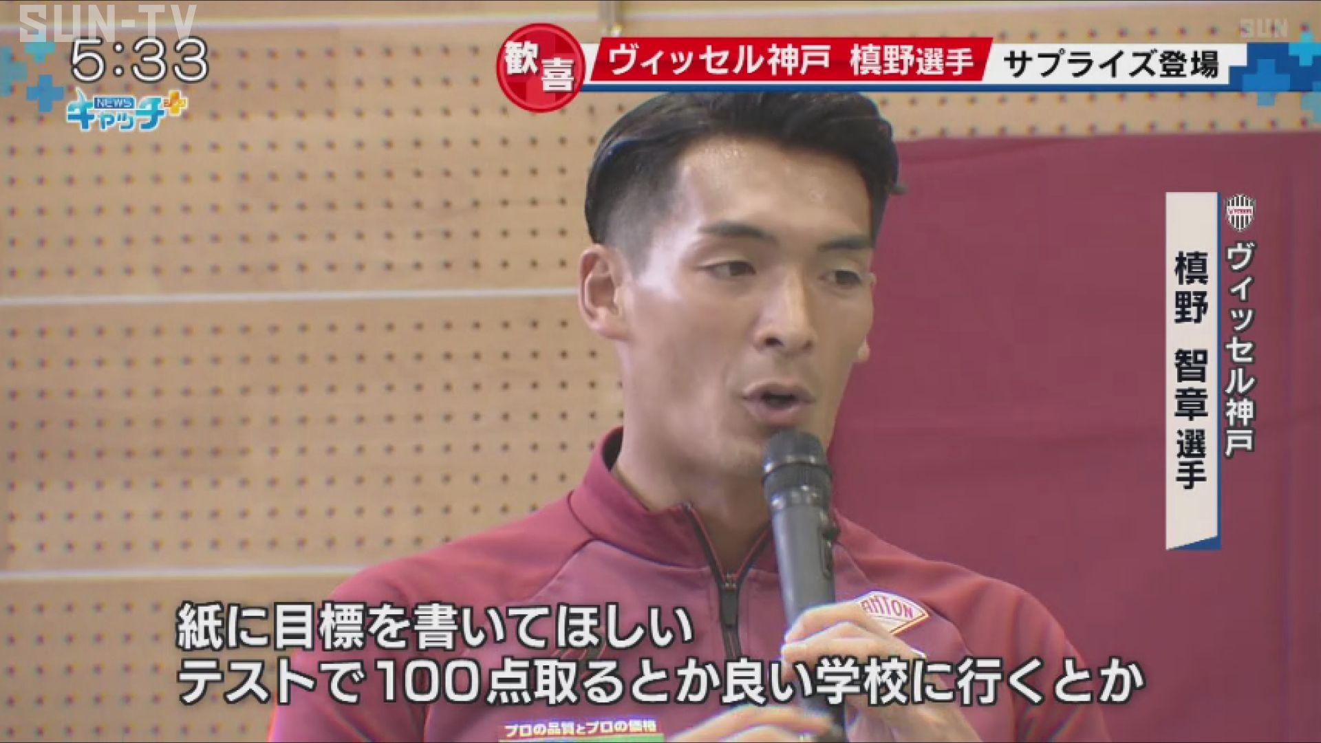 サッカーJ1ヴィッセル神戸の選手が18日、神戸市内の小学校を訪問し、児童に夢を持つことの大切さを伝えました。