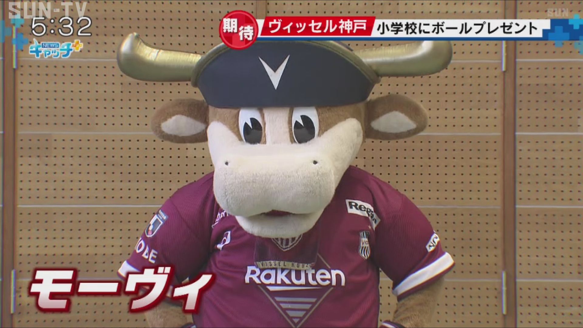 神戸市長田区の宮川小学校を訪れたのは、ヴィッセル神戸のマスコットキャラクター・モーヴィ。