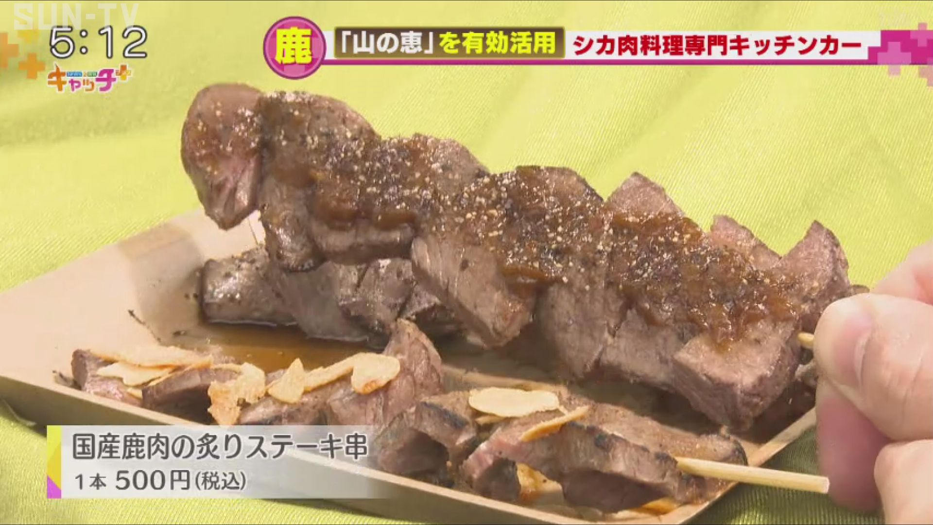 害獣として嫌われ、「臭くて硬い」というイメージのあるシカを、「山の恵」として おいしく利用しようと考えたのがシカ肉料理専門のキッチンカーなのです。