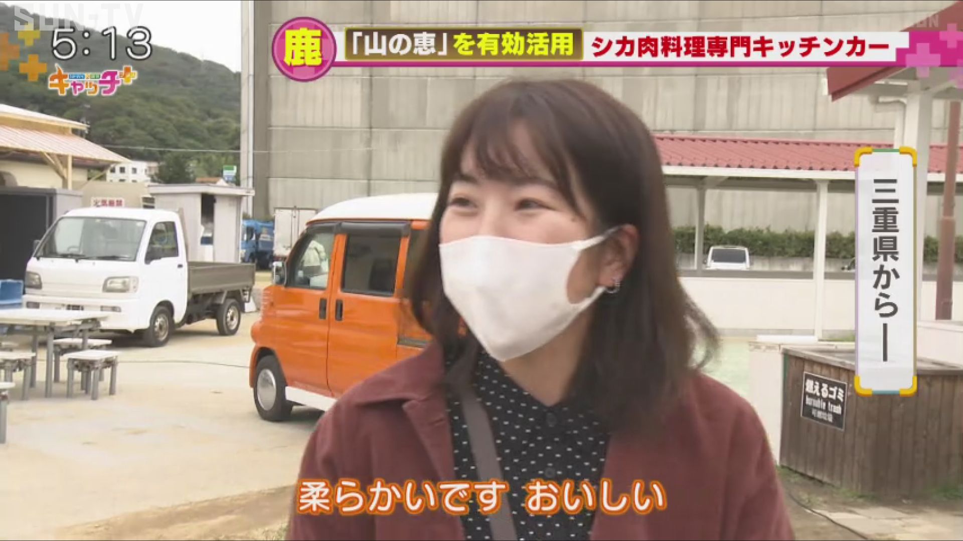 三重県から来たこちらの女性。初めてシカ肉を食べるという、そのお味は?
