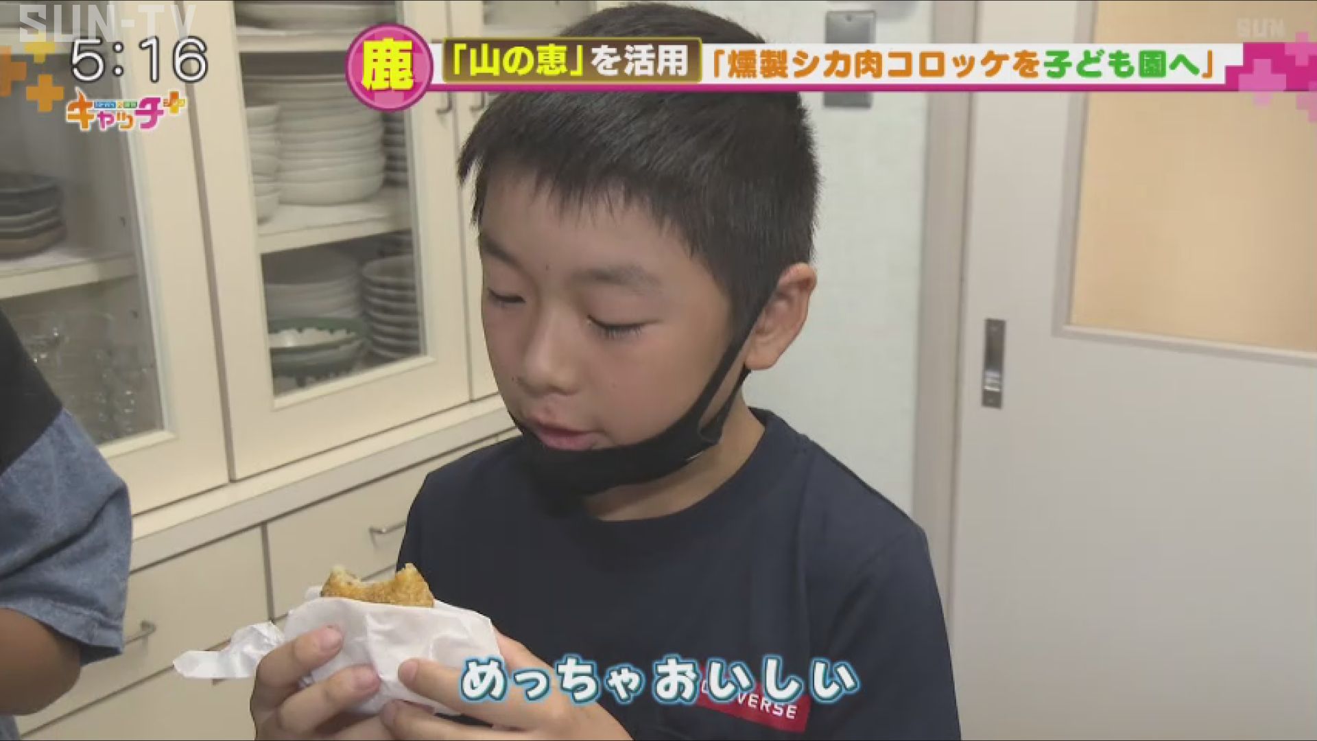この日は、町の子ども達に燻製シカ肉コロッケの試食をしてもらうことに。