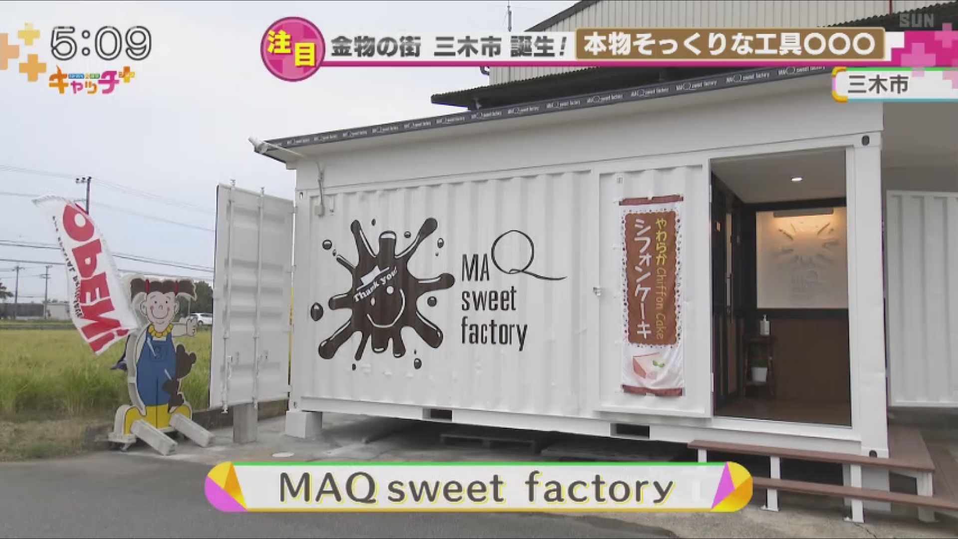 三木市にちなんだ、ユニークな商品をつくっているのは白いコンテナハウスが目印の『マック・スイート・ファクトリー』です。