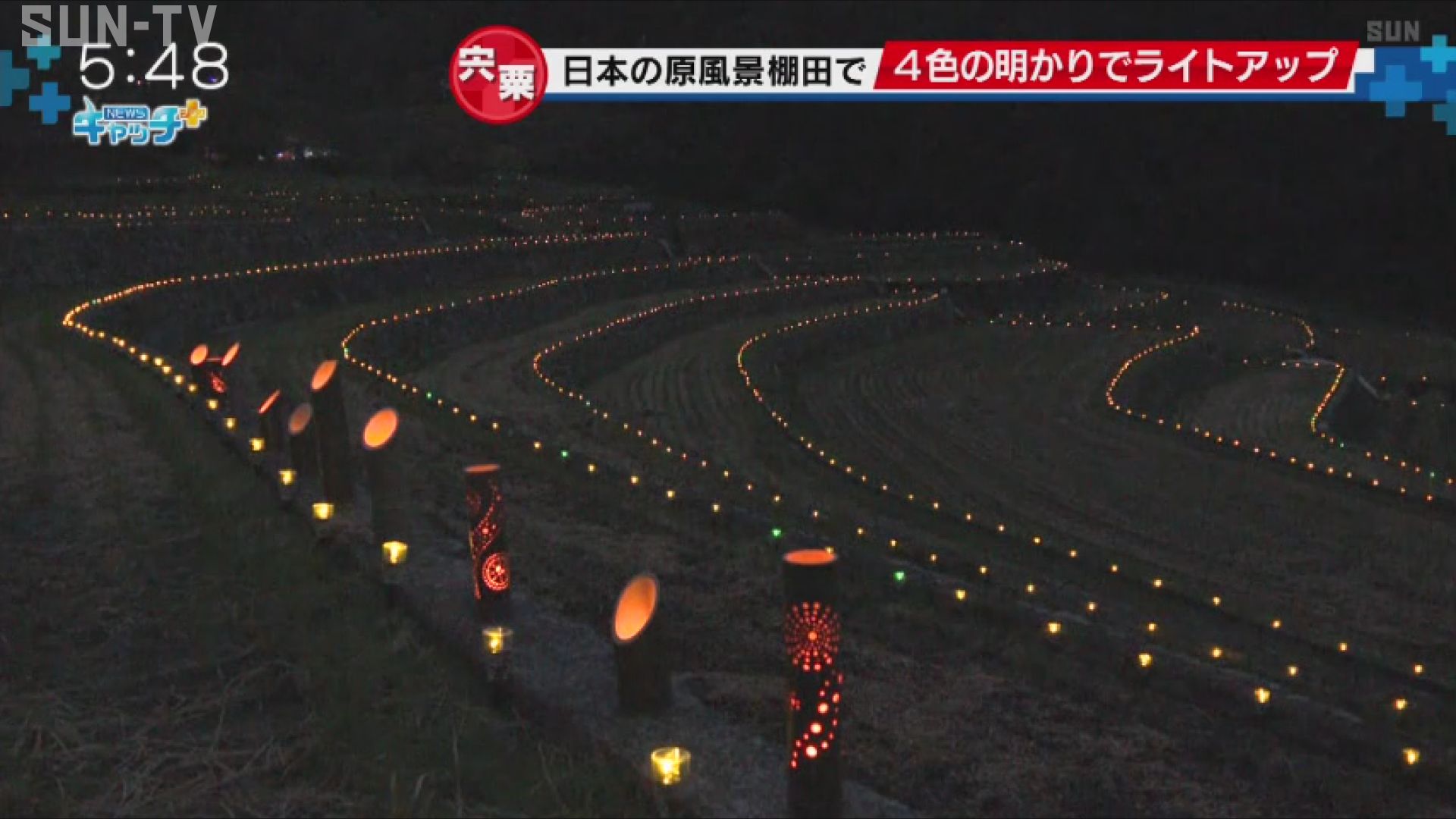 10月21日は「あかりの日」です。宍粟市一宮町では、棚田を明かりで彩るライトアップイベントが開かれ、一面に幻想的な風景が広がっています。