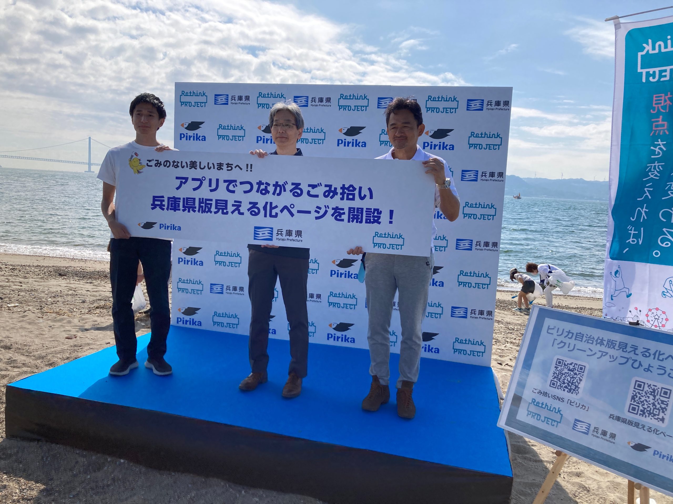 10月16日に望海浜(明石市)で開かれたキックオフイベントでは、参加者がごみ拾いSNS「ピリカ」を使って清掃活動を実施。清掃活動には95名が参加し、90Lのゴミ袋40袋分のゴミを回収しました。また、このイベント開催に関連して、10月13日からは三宮センター街(神戸市中央区)に設置されている大型ビジョンで、ブランドムービーが放映されています。