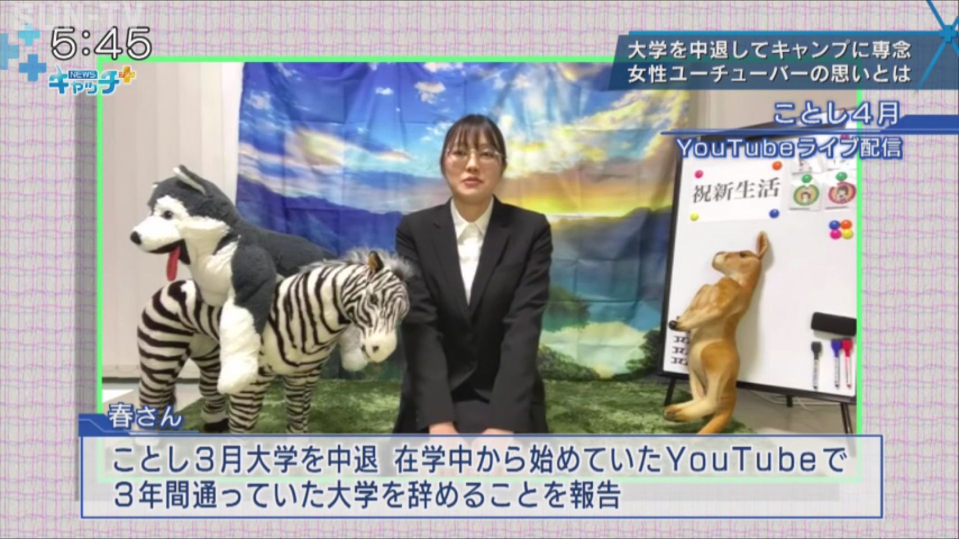 春さんはことし3月大学を中退し、在学中から始めていたYouTubeチャンネルで、これまで3年間通っていた大学を辞めることを報告しました。
