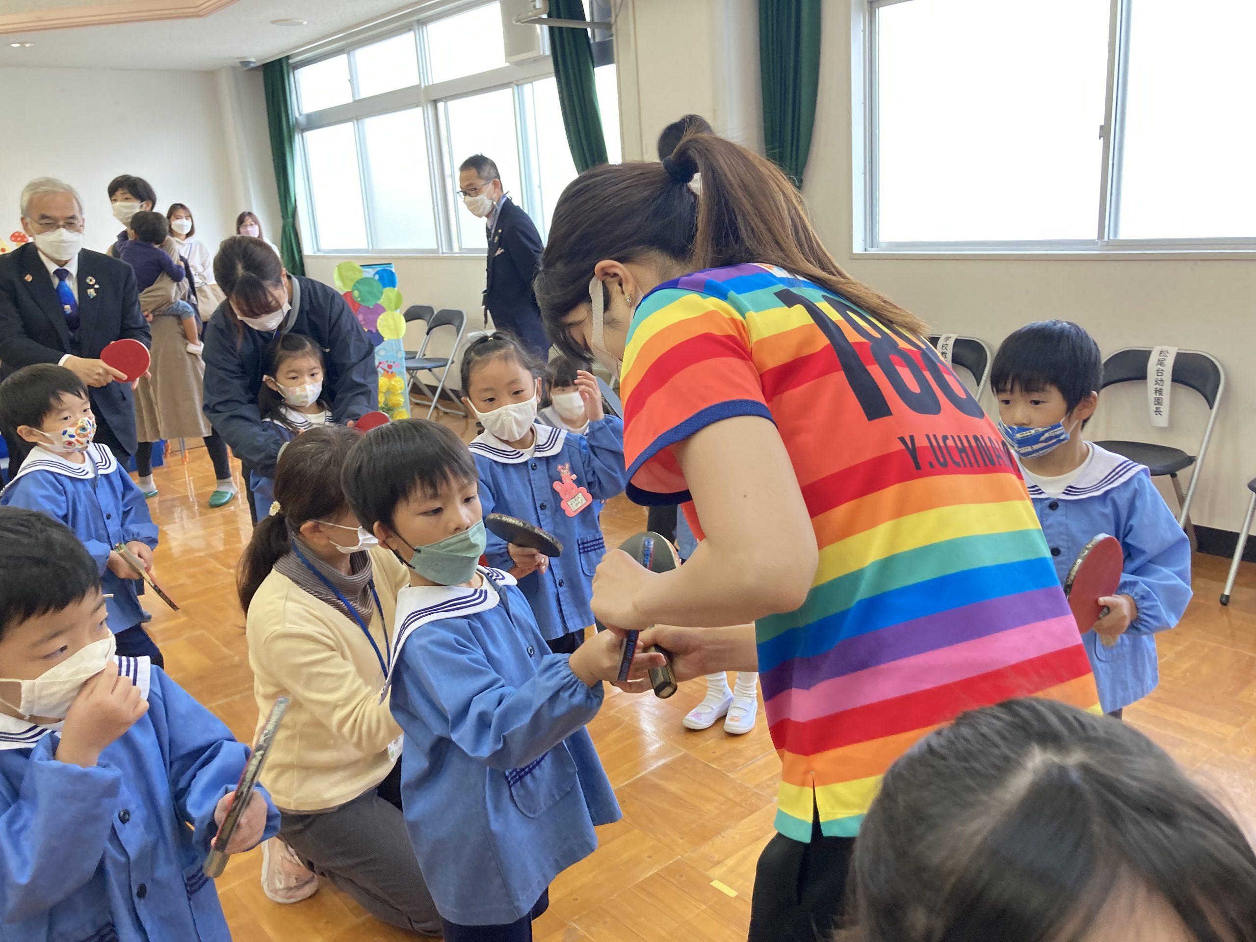 今日は、六瀬幼稚園の皆さんと一緒に卓球することができとても楽しかったです!