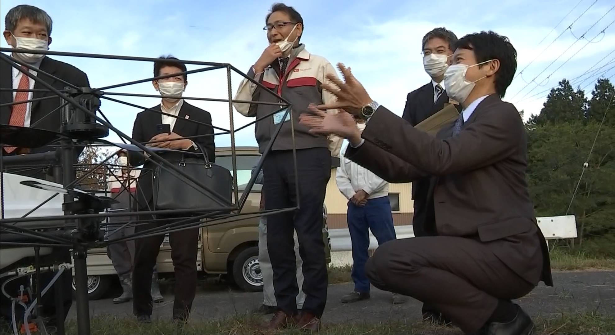 27日は、農薬散布用のドローンを使った飛行実験を見学。 ダイハツ工業が進める「スマート農業」の取り組みなどについても説明を受けていました。