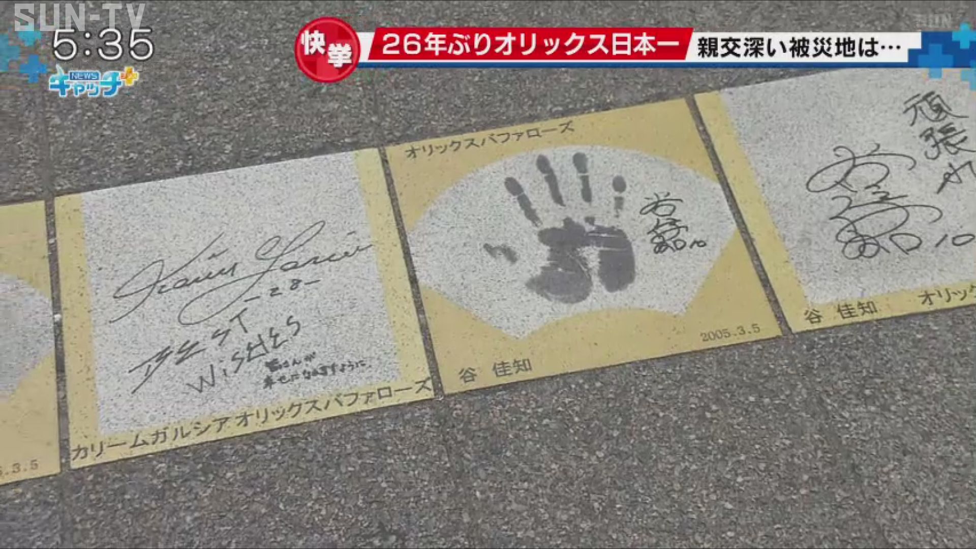アーケードの入り口には、オリックスの選手の手形やサインが刻まれています。