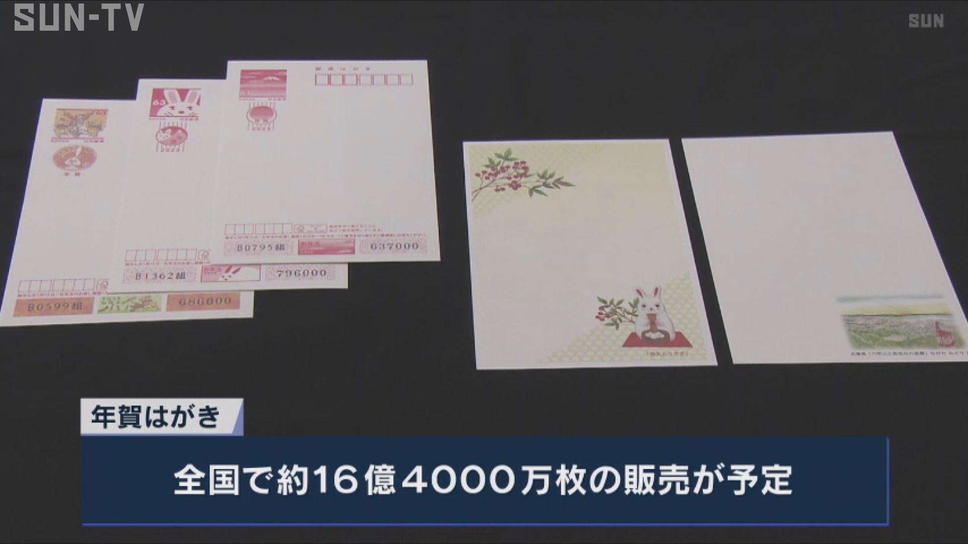 年賀はがきは来年の干支・うさぎがデザインされたものや、六甲山と神戸の町並みが描かれたものなど、全国でおよそ16億4000万枚の販売が予定されています。