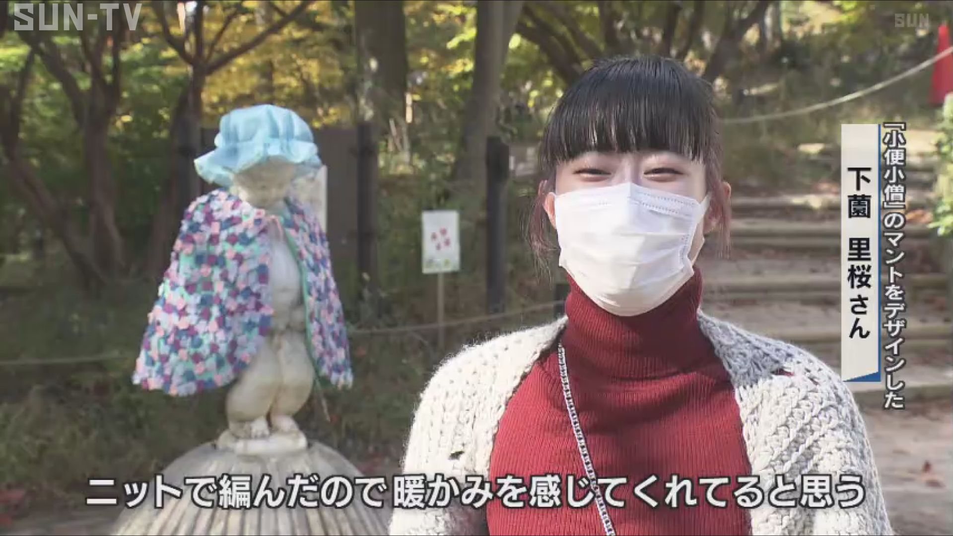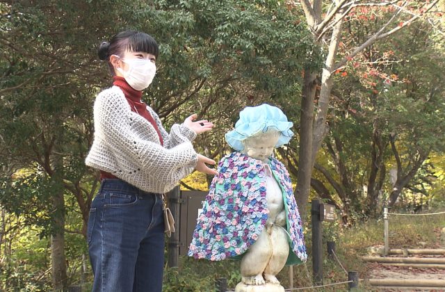 本格的な冬の到来を控え、六甲高山植物園のマスコット「小便小僧」に暖かいマントがプレゼントされました。