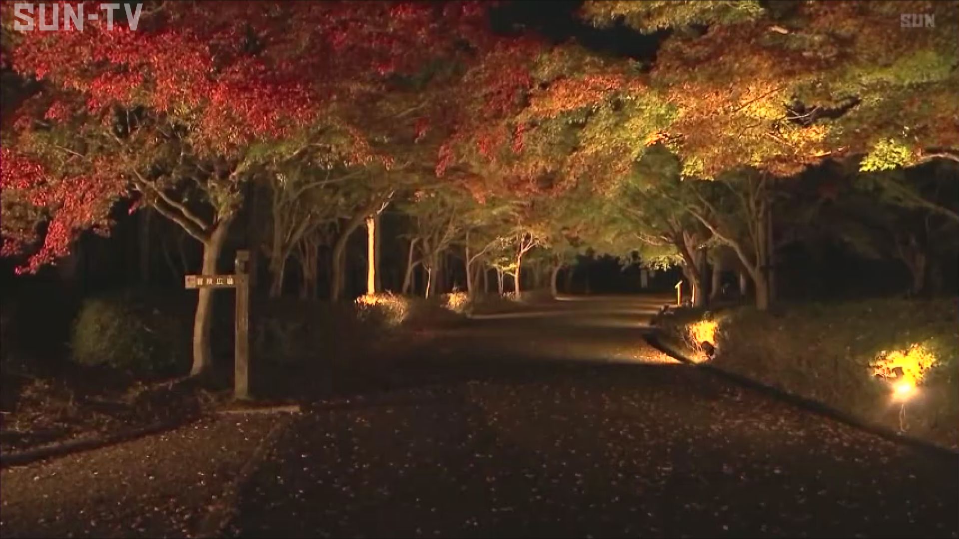余暇村公園は紅葉の名所として知られ、日中とは異なる雰囲気を楽しんでもらおうと、2013年から園内のライトアップを行っています。