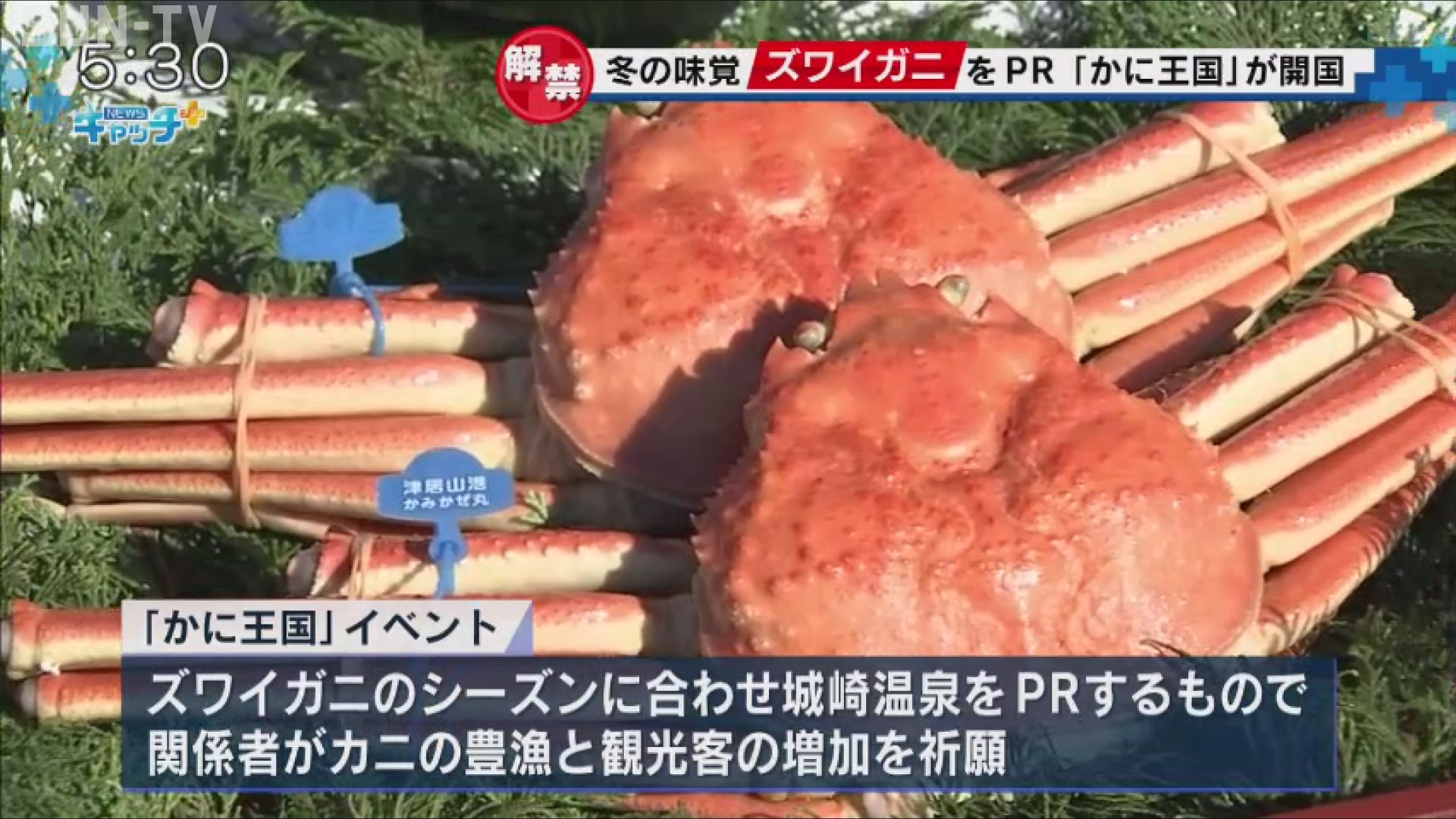 但馬の冬の味覚・ズワイガニ漁が6日に解禁されたのに合わせて、豊岡市の城崎温泉で7日、恒例のPRイベント「かに王国」の開国式が開かれました。