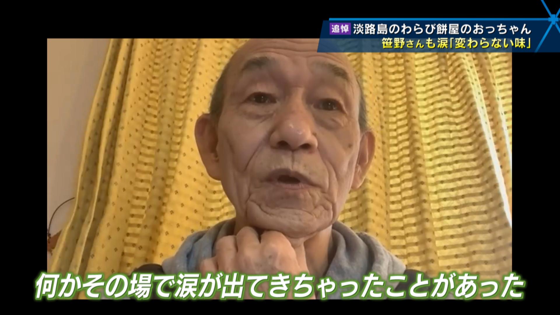 淡路島出身の俳優 笹野高史さん。おっちゃんの姿が(主人公の)モチーフになった映画「あったまら銭湯」で主演を務めました。笹野さんも子どものころにおっちゃんのわらび餅を食べていた1人です。