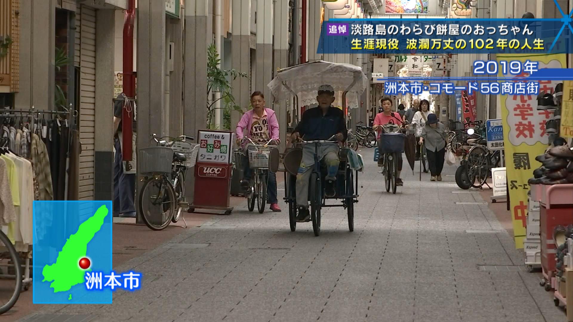 屋台付きの三輪車をこぎ、70年にわたって洲本市でわらび餅を販売していた川西俊一さん。101歳になっても現役で活躍していましたが、あの元気な姿はもうそこにはありません。