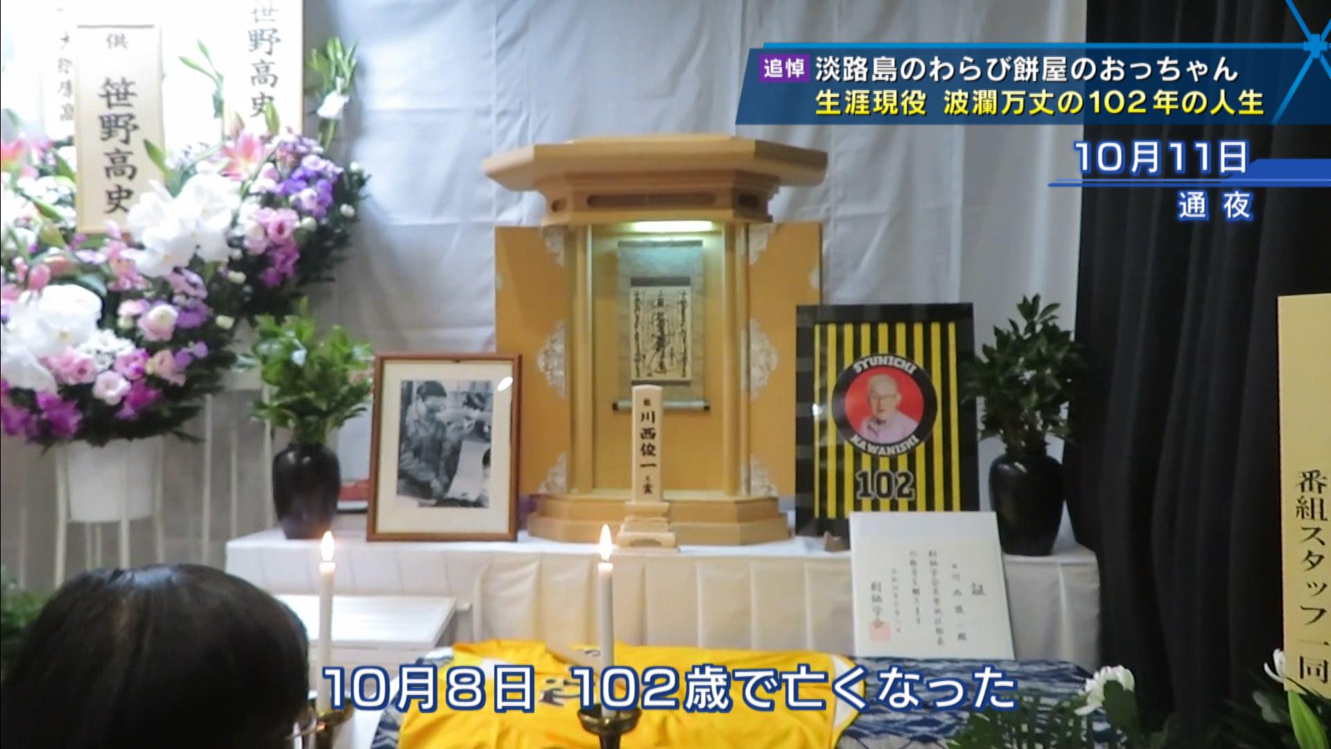 淡路島で長年「わらび餅屋のおっちゃん」として親しまれた洲本市の川西俊一さんが10月8日に102歳で亡くなりました。わらび餅を作り続けて70年以上。101歳まで現役を貫いた川西さんの人生とは?
