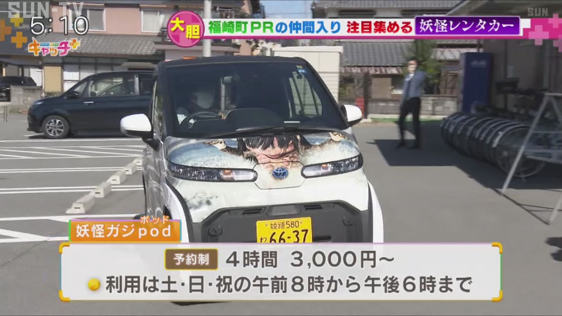 「このガジロウをテーマにしたレンタカーが、こちら!『妖怪ガジPod(ポッド)』になります。」
