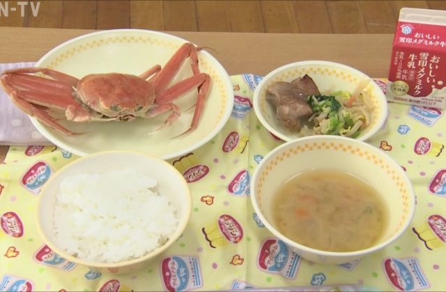兵庫県新温泉町できょう、11月6日に漁が解禁されたセコガニを使った給食が町内の小中学校で提供されました。
