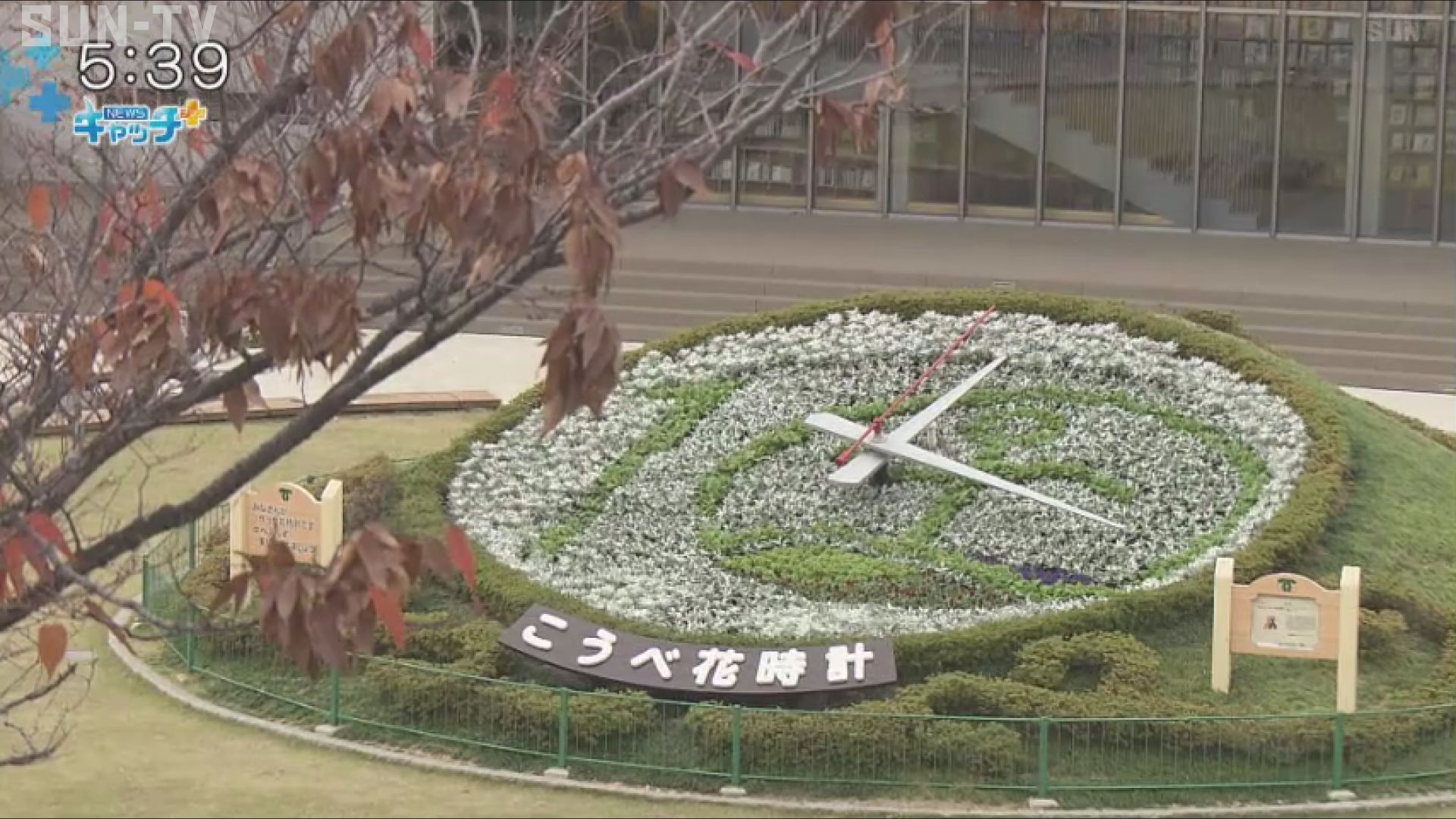神戸マラソンのロゴをモチーフにした花時計は、12月上旬まで楽しむことができます。