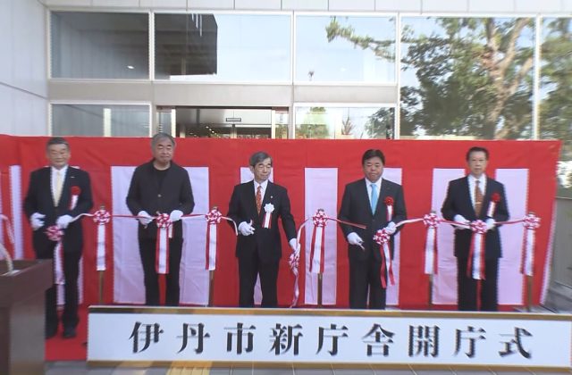 伊丹市役所の新しい庁舎が今月28日にオープンするのを前に22日、記念の式典が開かれました。 記念式典には、伊丹市の藤原保幸市長や、新しい庁舎を設計した世界的建築家の隈研吾さんらが出席しました。