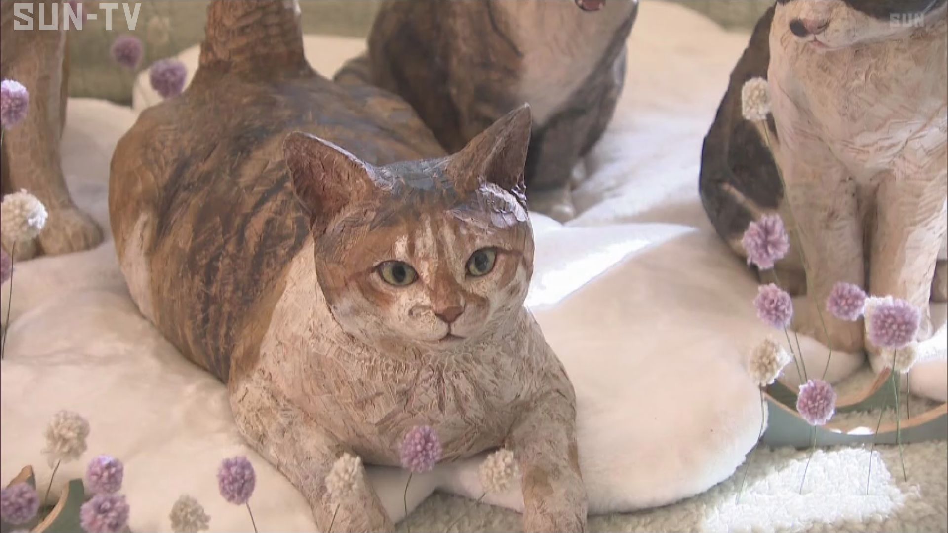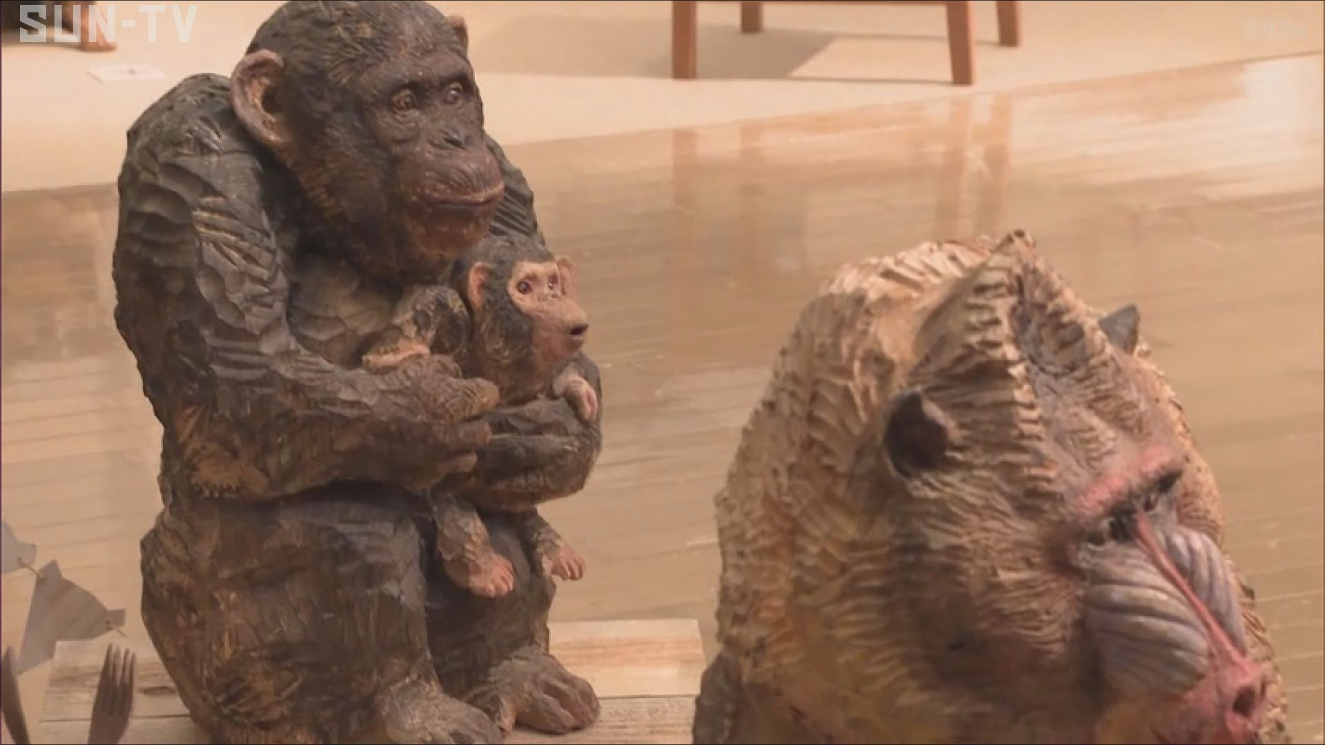 会場ではイヌやネコなどの身近な動物のほか、クマやオラウータンなどの彫刻も並び、展示されている作品の中には直接手を触れることができるものもあるということです。